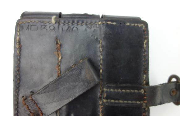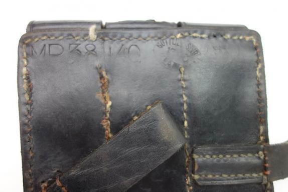 Nice and very rare to find leather MP38/40 magazine pouch, marker marked and dated “1943”