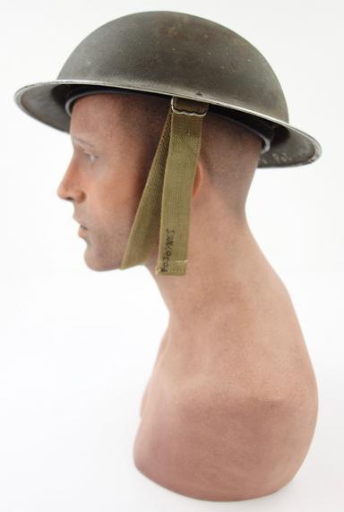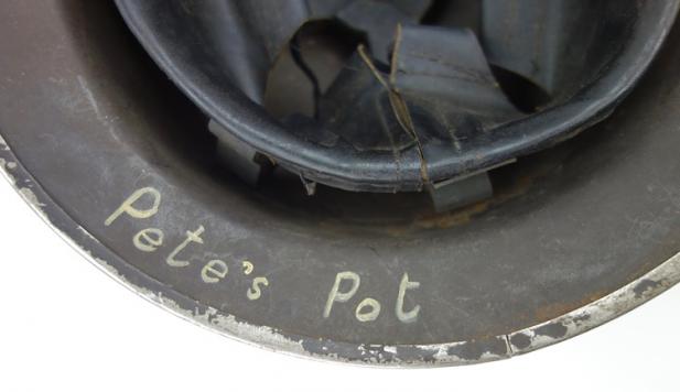 “Pete’s Pot” with nice rough camo paint, original helmet strap and very nice original liner.