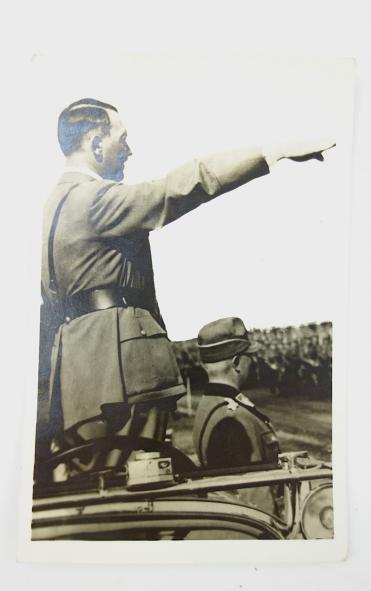 Third Reich Postcard with Adolf Hitler Nice postcard printed by “Photo Harren, Nürnberg” Adolf Hitler at an Reichs Arbeids Dienst rally (Labour Service) in good condition.