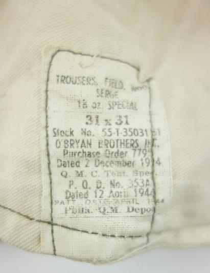 US WW2 wool M36 Trousers Nice used US WW2 M36 trousers With cloth label inside. Made by “O’Bryan Brothers Mfg.” Dated “December 2, 1944” In used but very good condition.