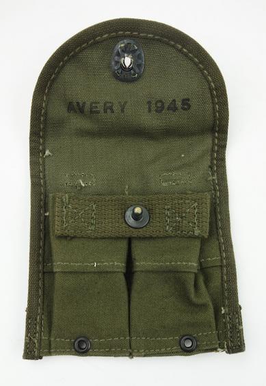 US WW2 30 M1 Carbine magazine pouch Mint US WW2 30 M1 Carbine magazine pouch Made by “Avery” and dated “1945” Would holt 2 box magazines with each 15 rounds Cal.30 M1 ammo. Impossible to upgrade!