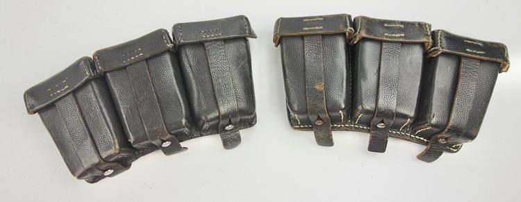 Very nice nearly matching second model K98 pouches. With all stripper clip dividers inside.