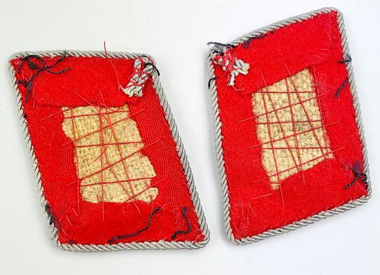 Very nice pair of Luftwaffe Flak (Anti Aircraft Artilley) Officers Collar Tabs in the rank of captain “Hauptmann” great pair of Luftwaffe Flak collar tabs in very good condition. Fantastic for a cloth insignia collection of to complete a tunic!