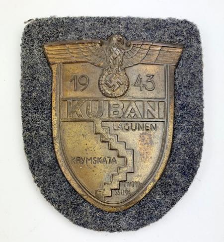 Luftwaffe Kuban Shield Very nice Luftwaffe Kuban Shield With Luftwaffe wool backing and its original paper finish backing. Overal very nice version of the “Kuban” shield with great details!