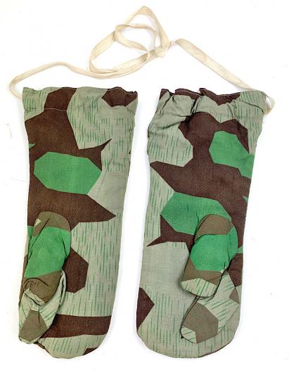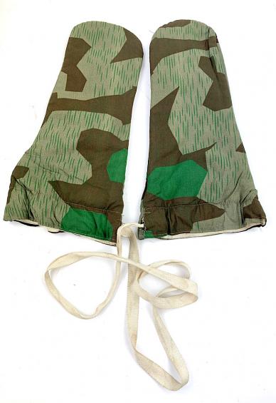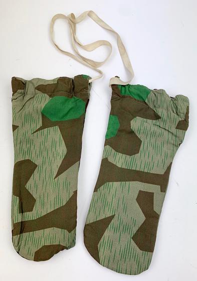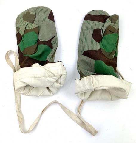 Mint Wehrmacht Splitter camo reversable winter gloves. Reversable to white and with there original connecting cord. Fantastic bright “Splitter” camo colors. Impossible to upgrade!