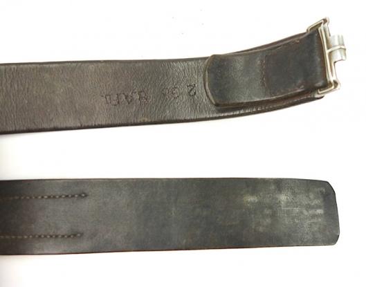 Wehrmacht leather combat belt Nice early leather enlisted combat belt. With aluminum buckle hook. Size “105” cm. (perfect mannequin size) Overal a nice smooth leather belt in used but very good condition.