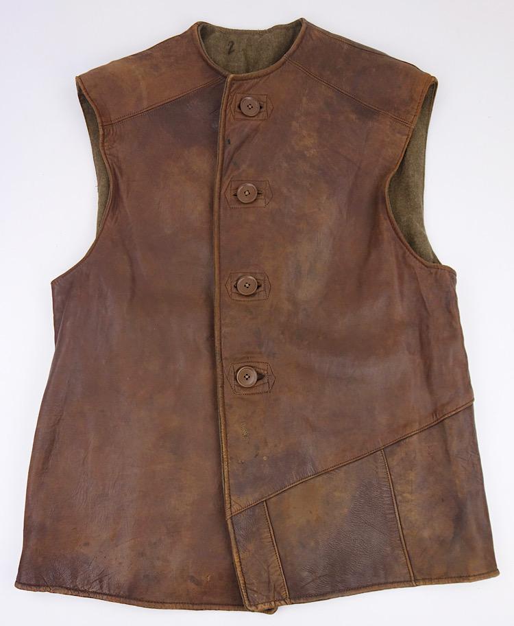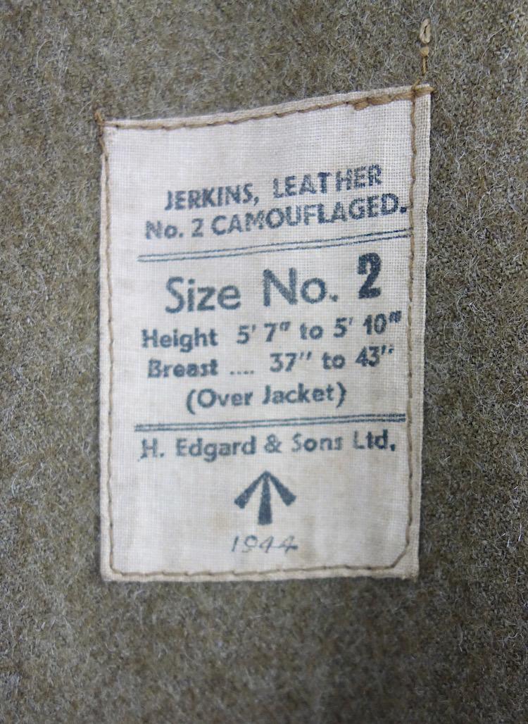 British WW2 leather Jerkin Very nice used smooth British WW2 leather Jerkin. Made by “H. Edgard & Sons Ltd.” In size “2” and dated “1944” fantastic for a British mannequin. In used but very good condition.