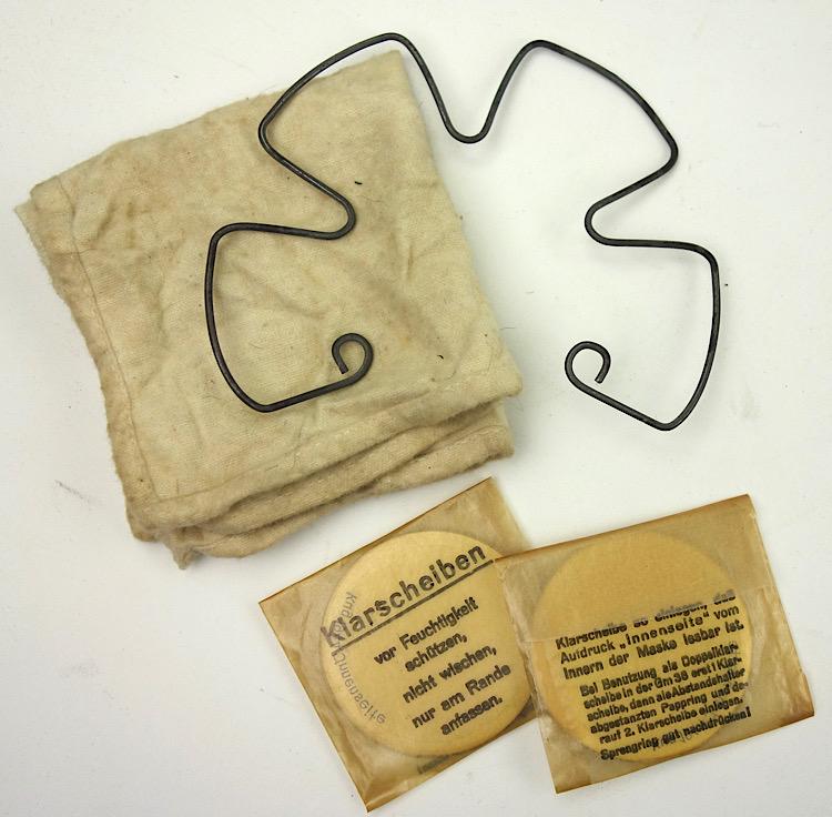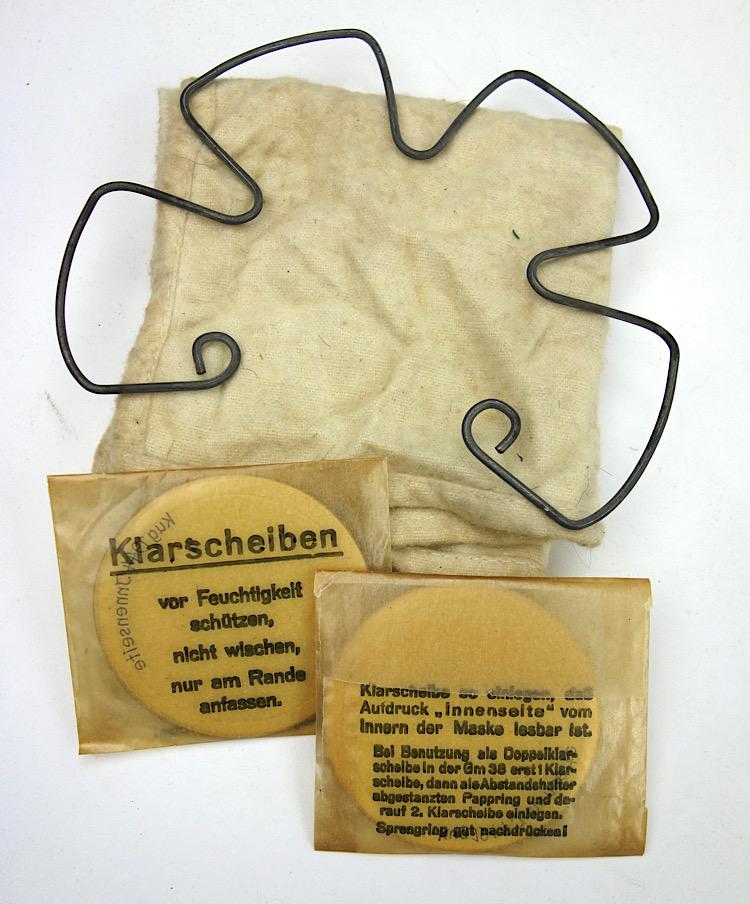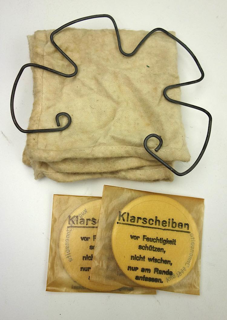 Wehrmacht M31 Gasmask Cleaning Cloth and Spring Nice used cleaning cloth and spring for the M31 gasmask and “Klarscheiben” Nice set to complete your M31 gasmask In good condition.