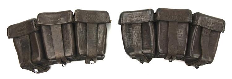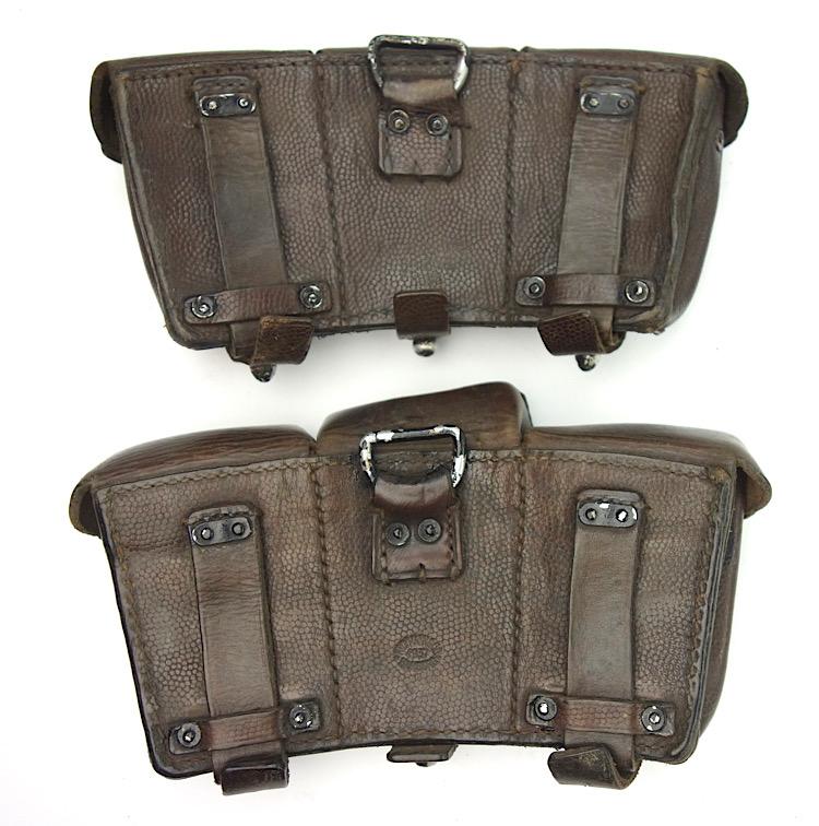 Nice near matching early type Luftwaffe chocolate brown K98 pouches. Both maker marked and dated.