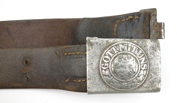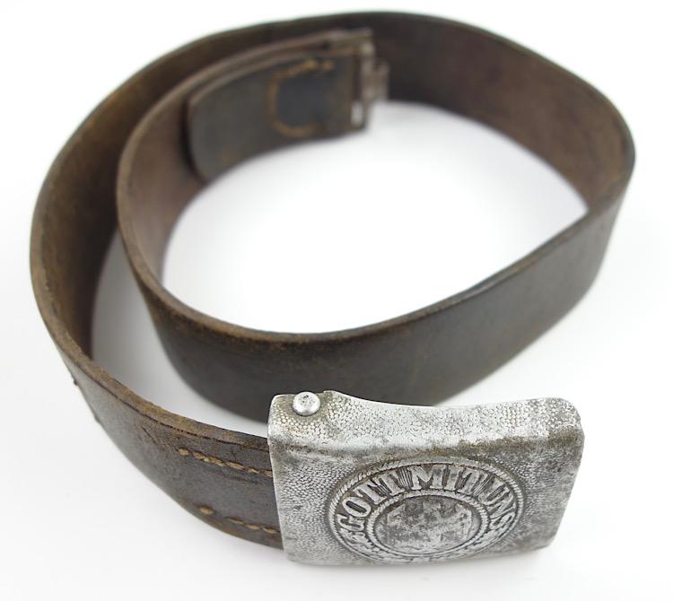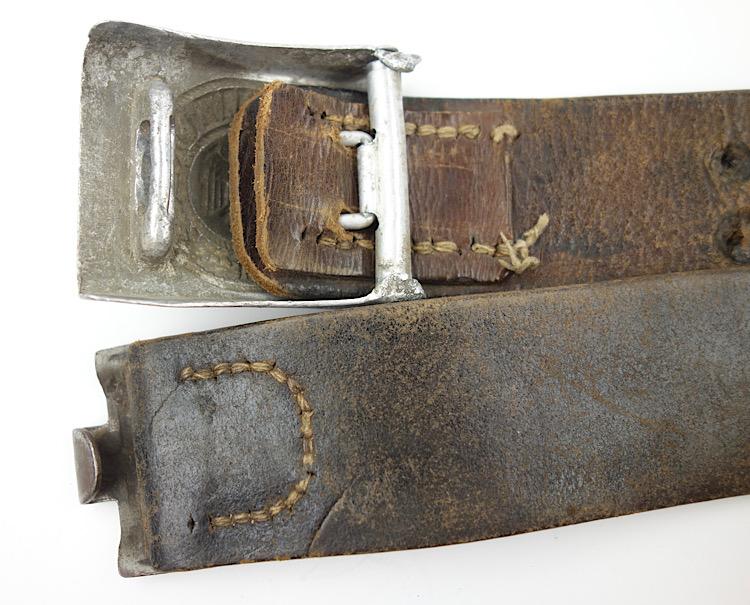 De-nazified Wehrmacht Belt Buckle with Belt Nice used de-nazified Wehrmacht belt buckle with belt. Aluminium Wehrmacht belt buckle and Wehrmacht belt in heavy used condition