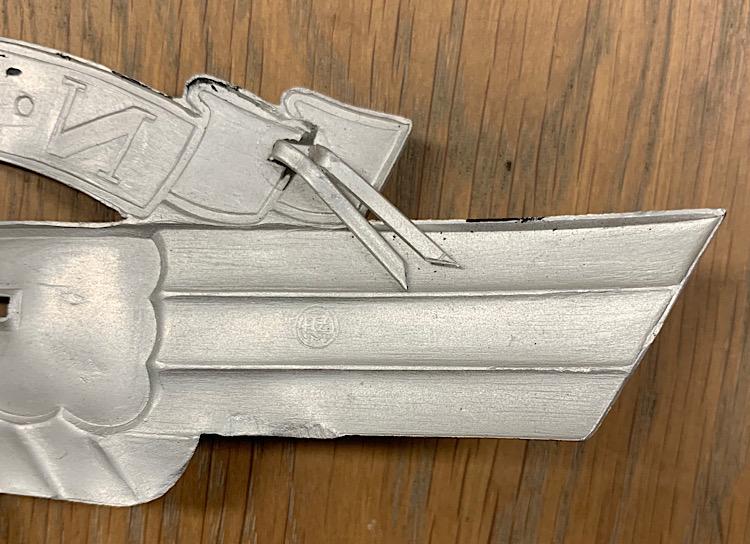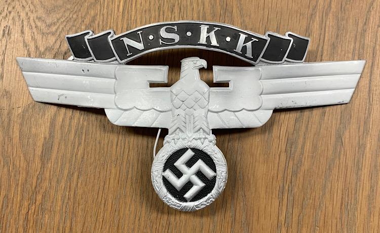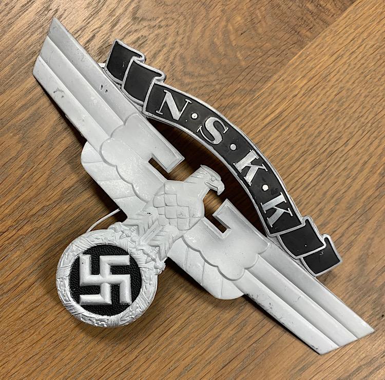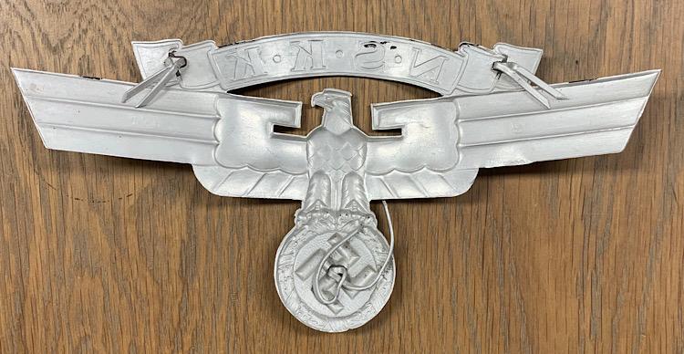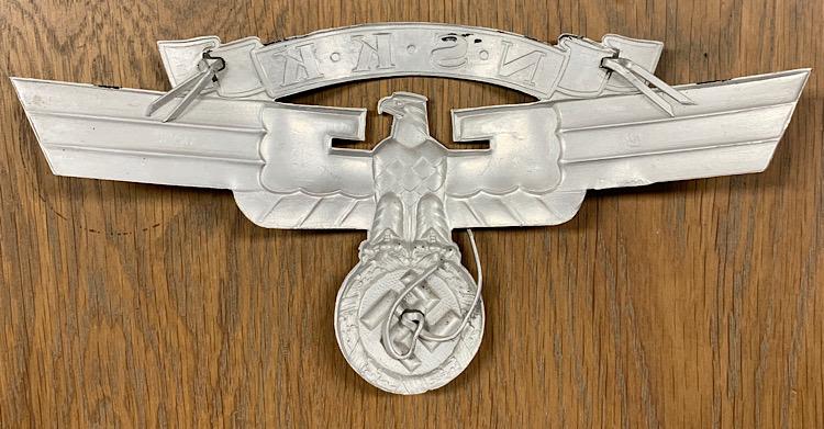 Fantastic and rare to find aluminum NSKK helmet eagle. Great for display or to complete a leather “NSKK Motorsturm” helmet! “RZM M1/8” marked, which is “Ferdinand Wagner, Pforzheim” rare to find!!