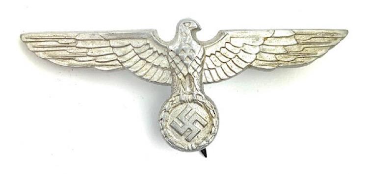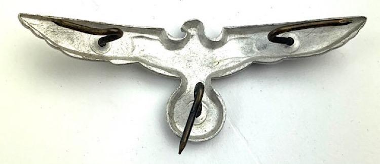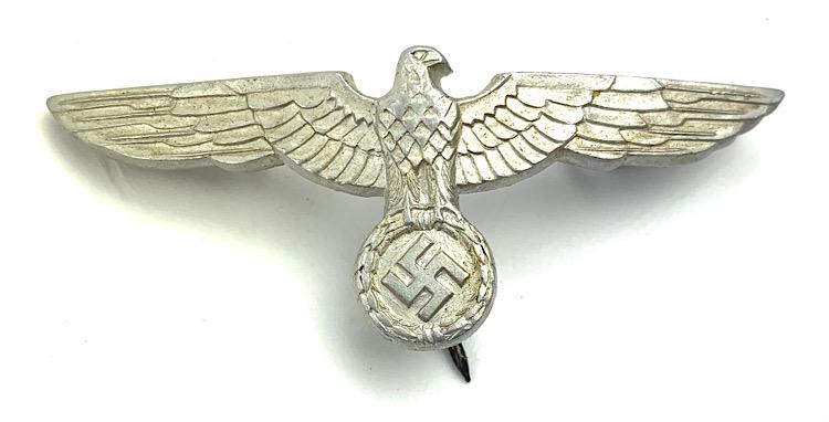 Wehrmacht aluminium visor cap eagle Very nice Wehrmacht aluminium cap eagle. With great details. Perfect to complete a visor cap Or just for a nice eagle collection. In used but very good condition.