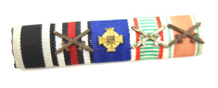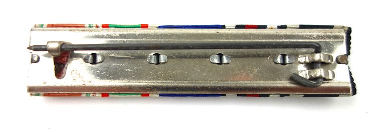 Nice Wehrmacht ribbon bar with war merrits cross ribbon, frontkämpfer 1914-1918 medal ribbon, Ost medal (Winterschlacht im Osten) and 1 Oktober 1939 medal ribbon. Overal a very nice ribbon bar, fantastic on a Wehrmacht tunic!