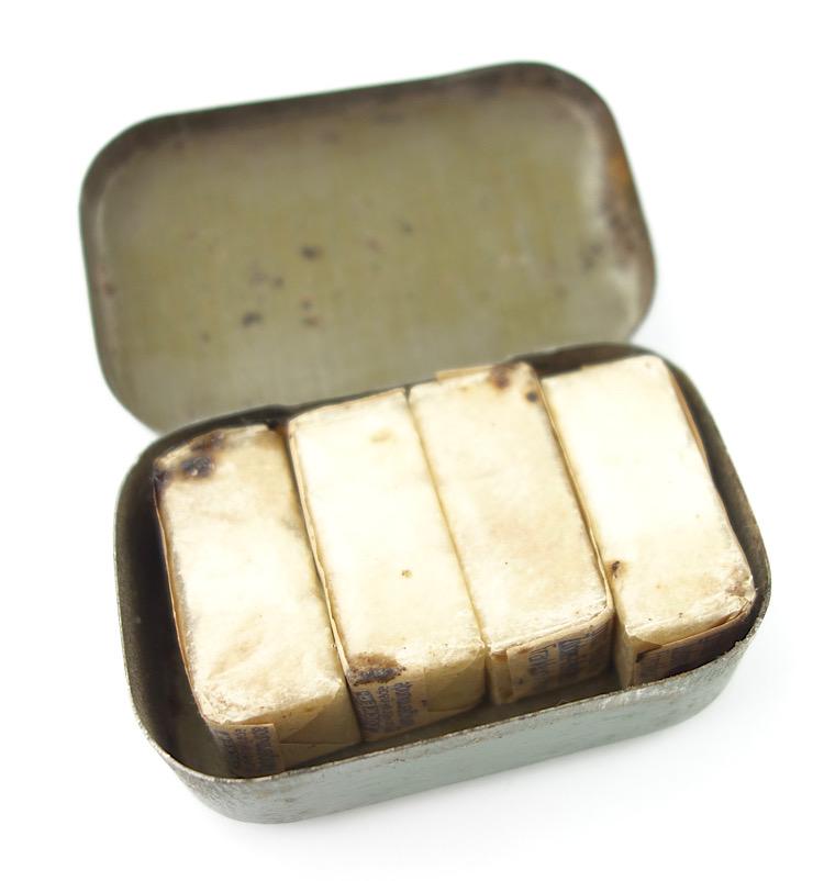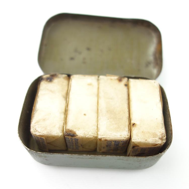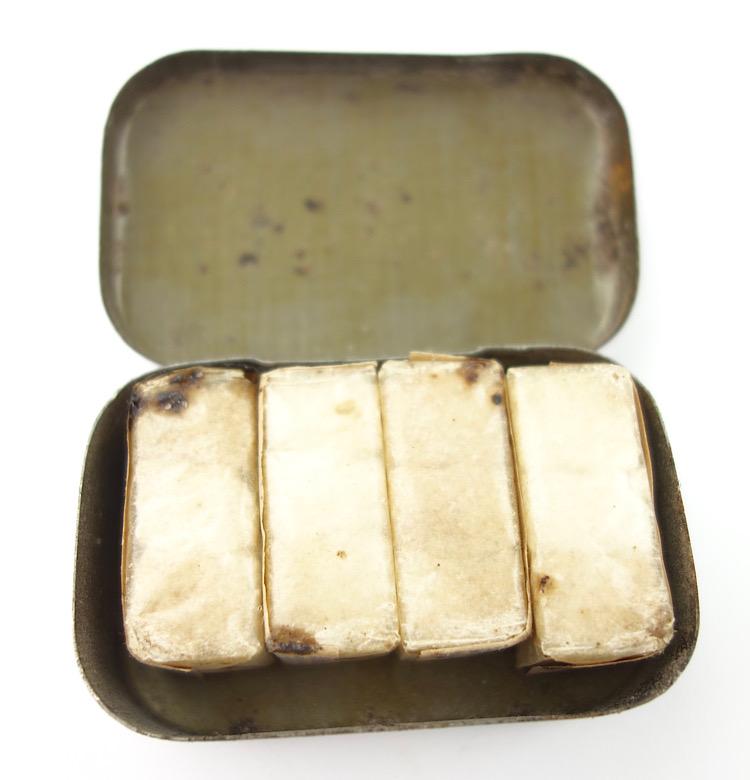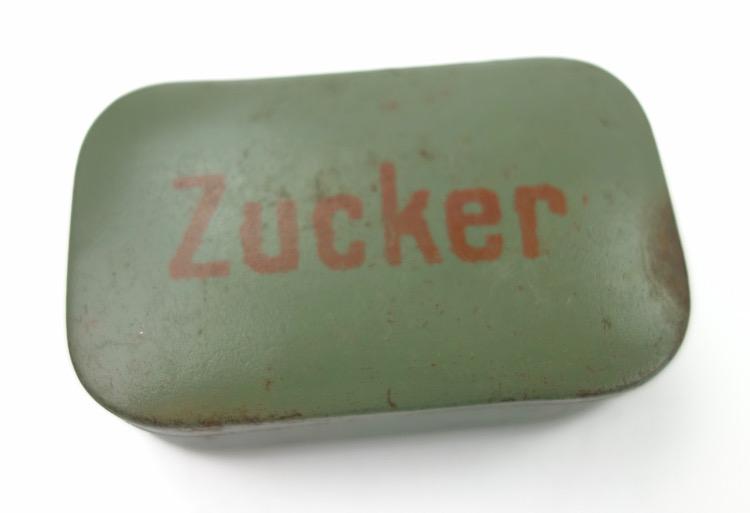 Very nice metal can in its original paint and with its original text “Sugar” which belongs in the Wehrmacht medical pouches as standaard equipment.