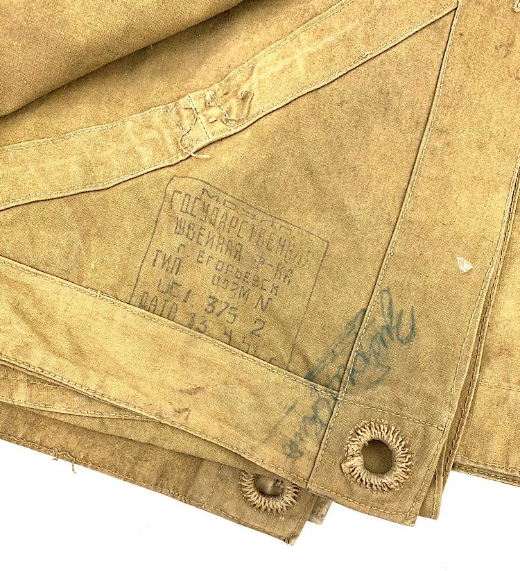 Very nice used Soviet Plash-Palatka (Shelter Quarter/Rain Poncho) used as shelter quarter and rain poncho. Buttons missing, but overal in good condition.Nicely maker marked and dated “1941”