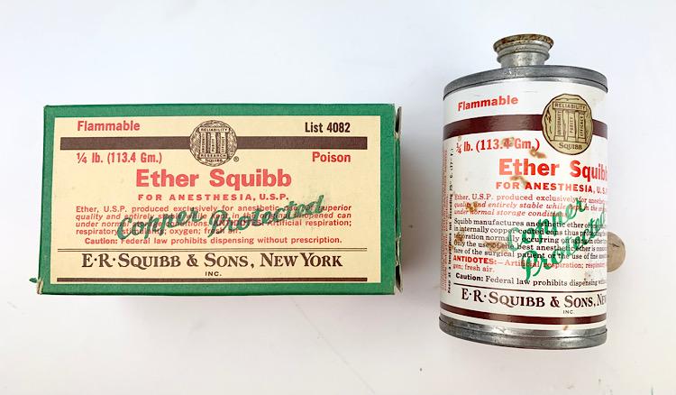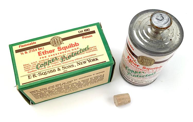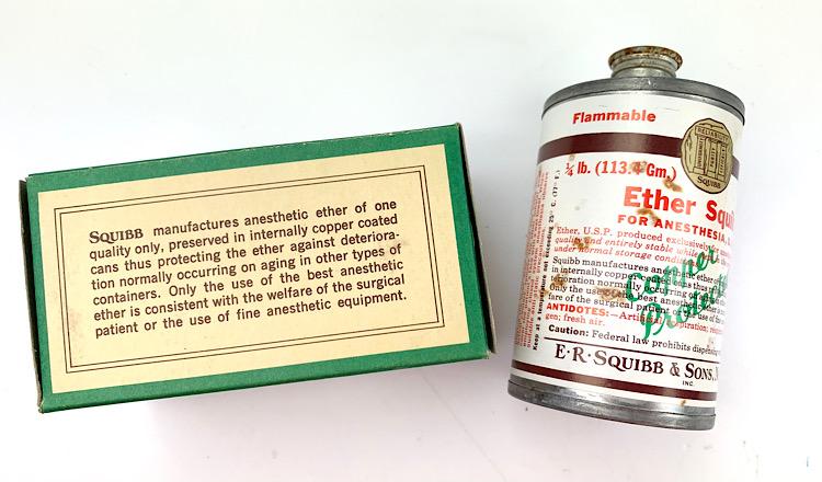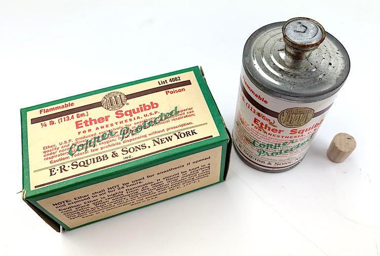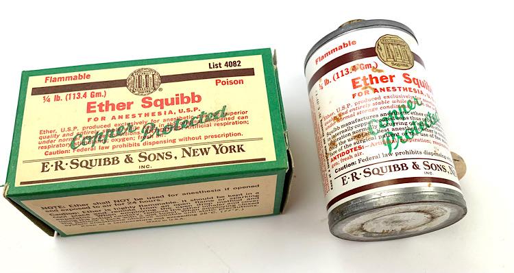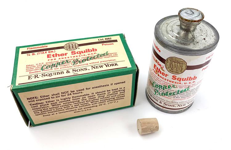 Original unopened metal can in its original clipboard package, with US WW2 medical “Ether” for “Anasthesia” purpose.
