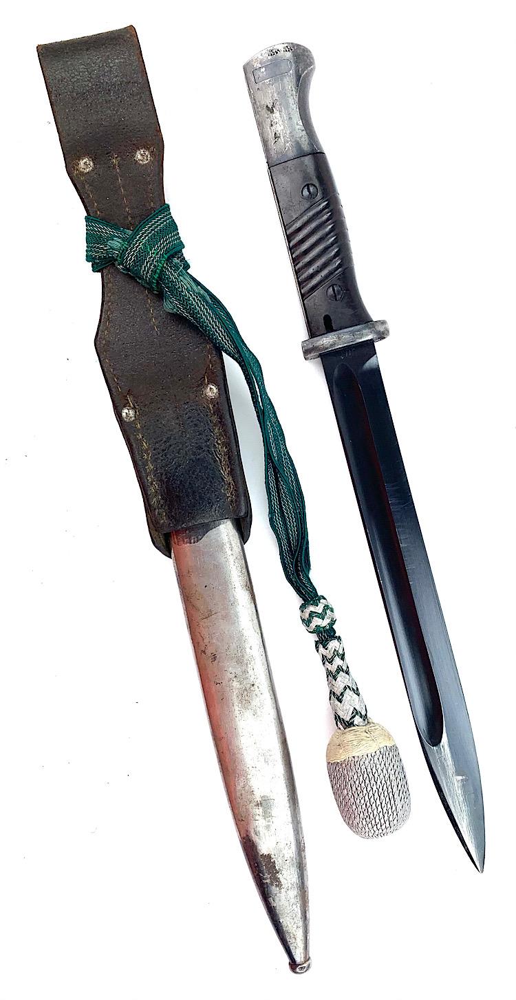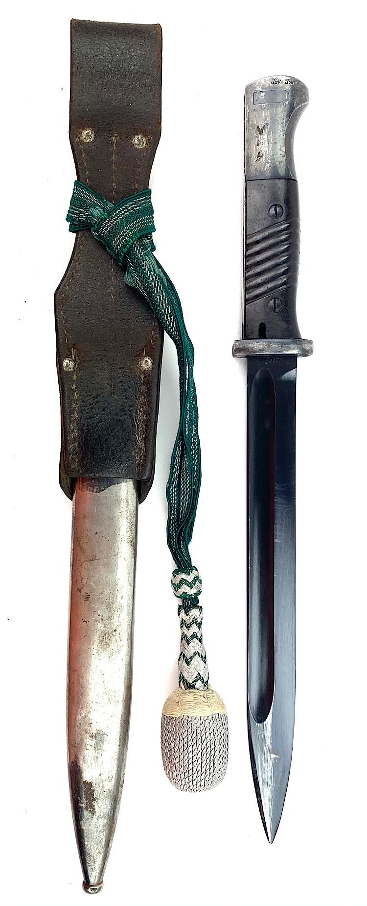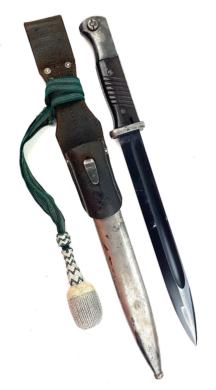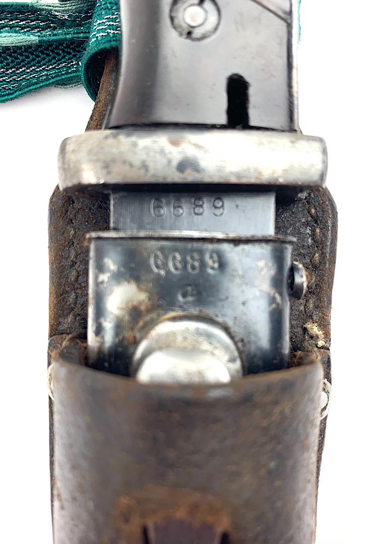 Nice used K98 Bajonet (Matching Numbers) with Frog & Porte Pé K98 bajonet and scabbard have matching numbers “6689”