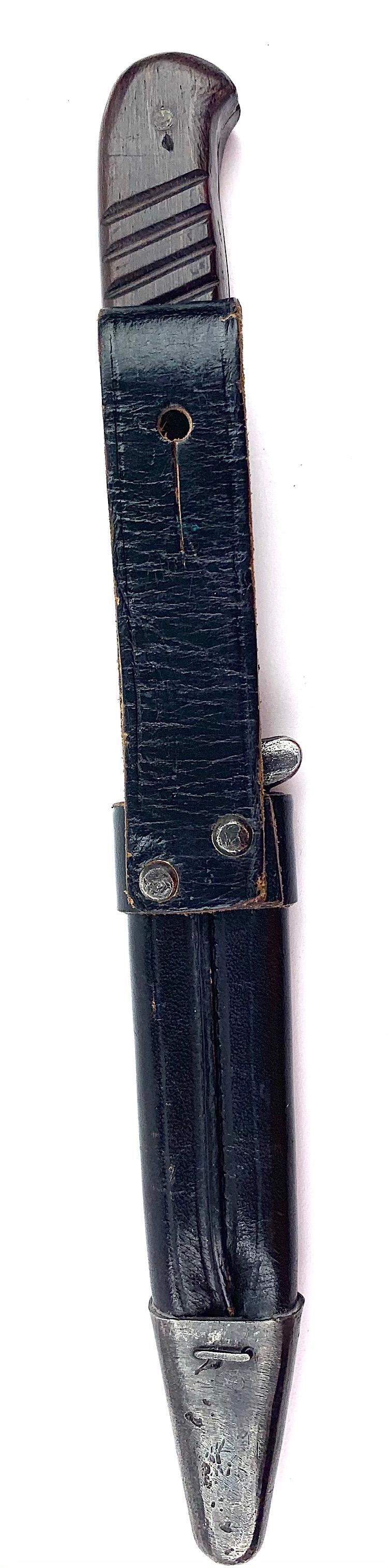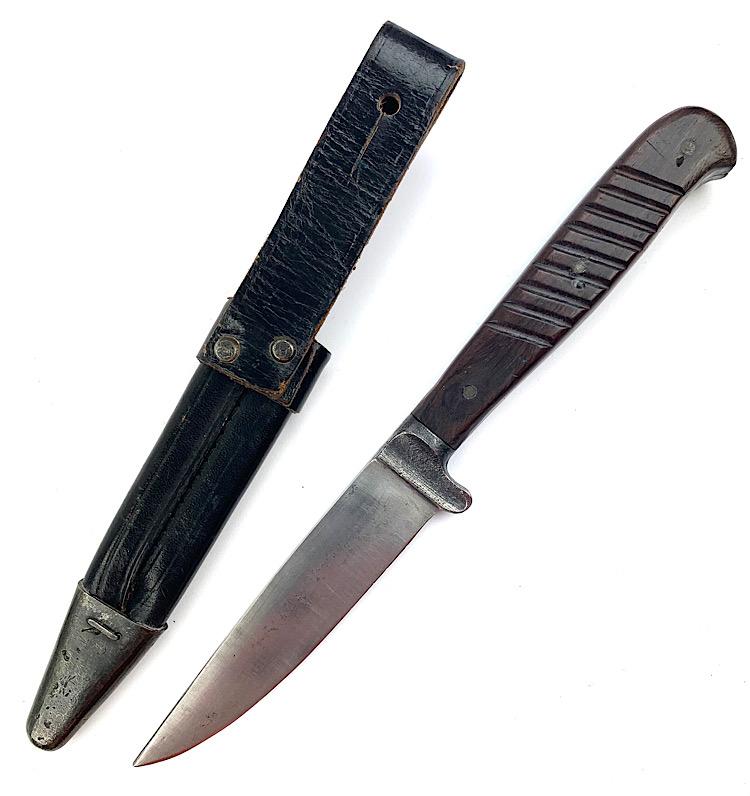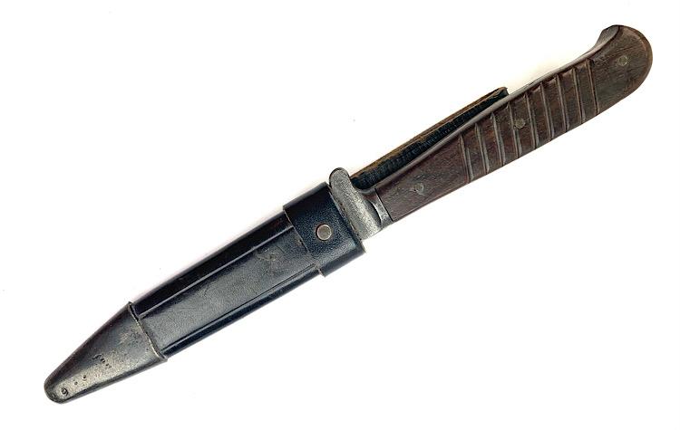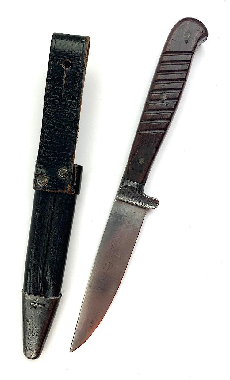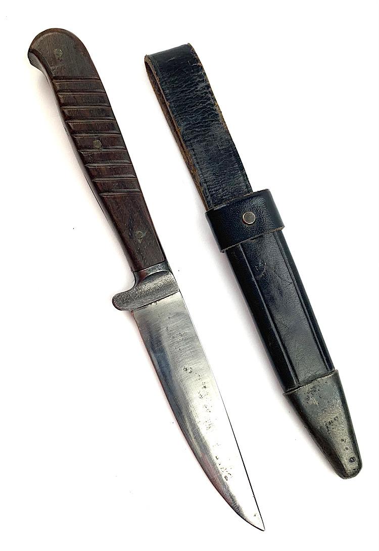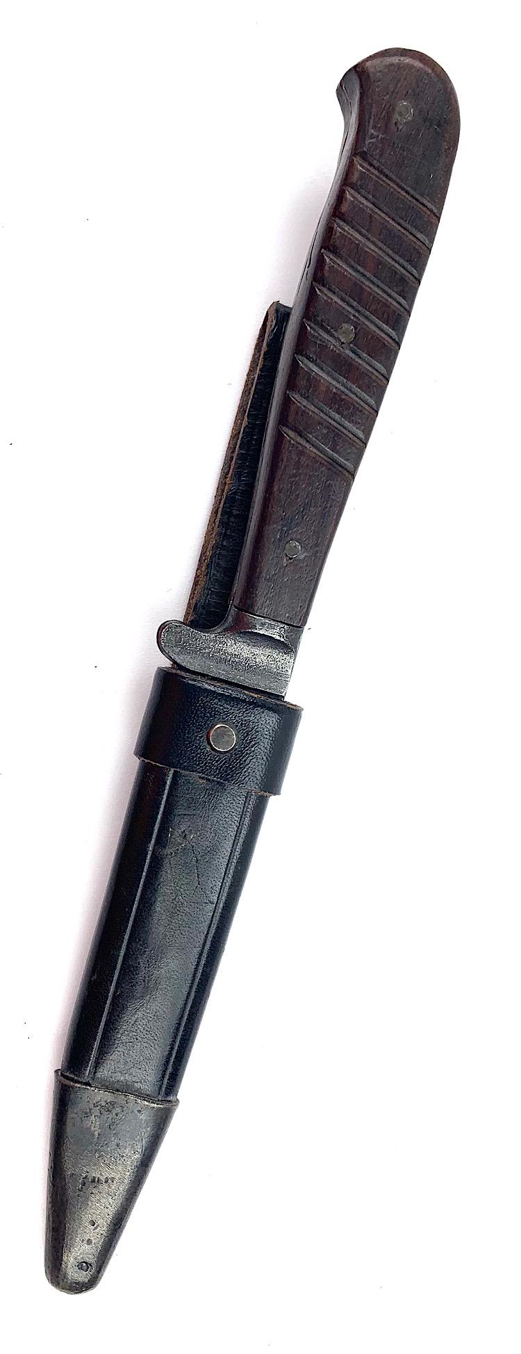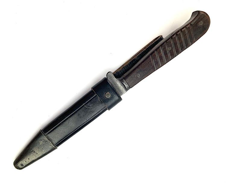 German WW1/WW2 Close Combat Knife Probably a privat purchased German WW1/WW2 close combat knife in nice leather scabbard Overal a very nice close combat knife in used but very good condition.