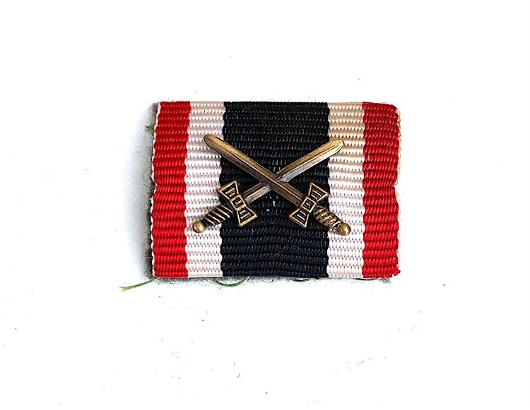 Wehrmacht Ribbon Bar Nice Wehrmacht ribbon bar with the ribbon of the War Merrits Cross with Swords “1939” Great to use in a nice Wehrmacht tunic. In very good condition.