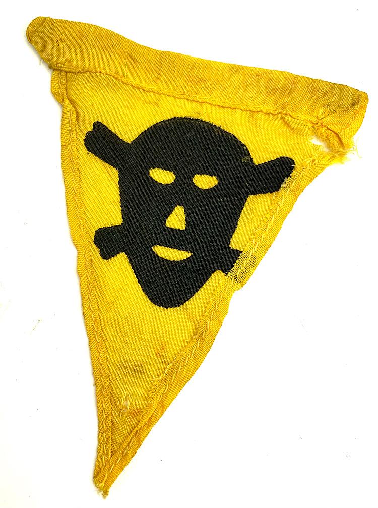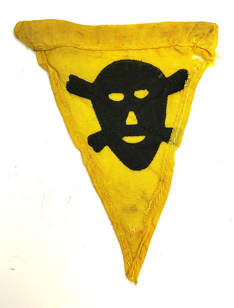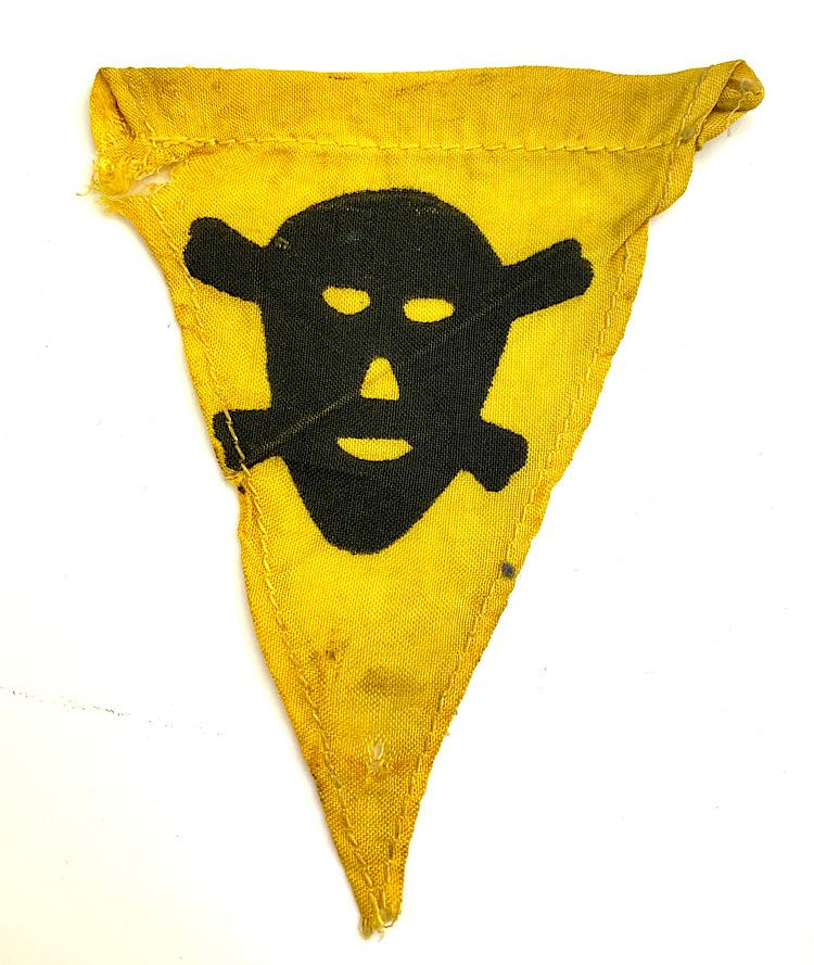 Officially for Wehrmacht combat engineers to mark enemy land mines. Als used by American soldiers under there helmet net. In used but good condition.
