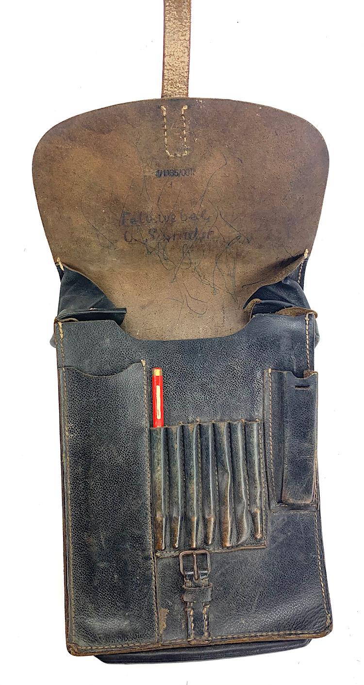 Wehrmacht leather Mapcase Nice used black leather Wehrmacht mapcase “RBN” number marked. Used by all ranks in combat In used but good condition.