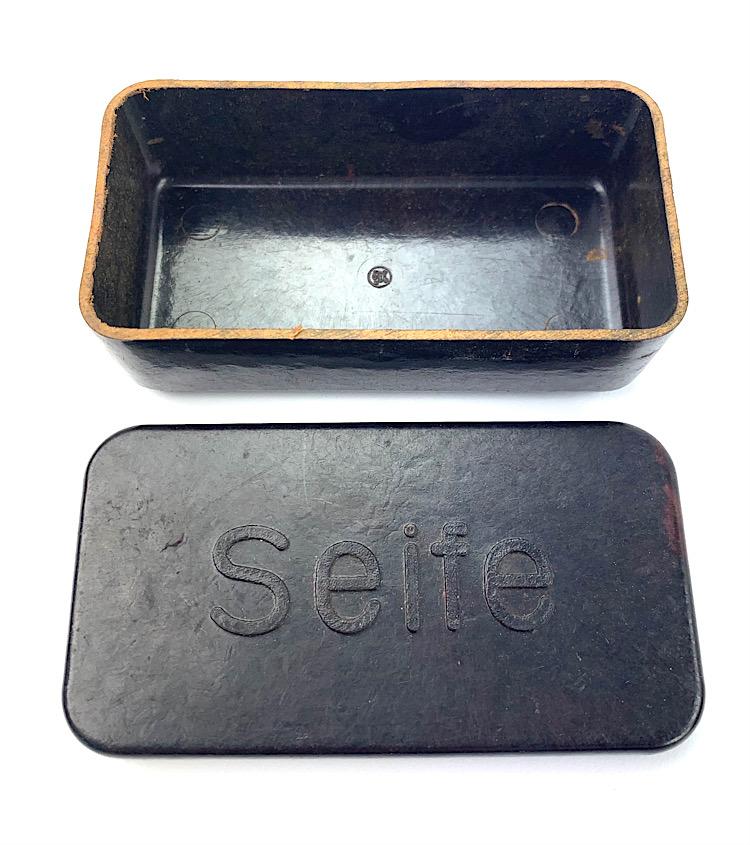 Wehrmacht Bakelite Medical Soap Container Very nice bakelite soap container. Belongs to medical equipment. In very good condition.