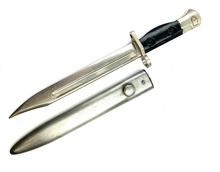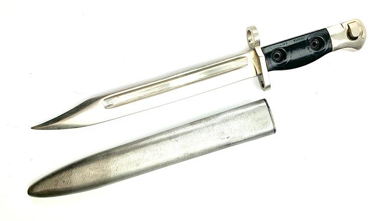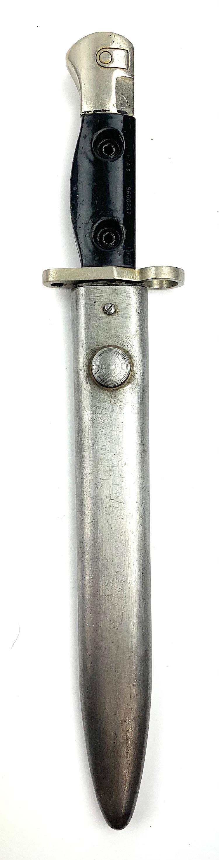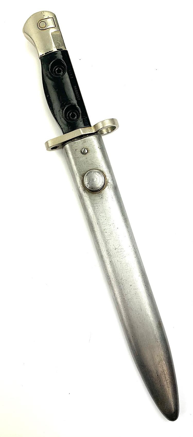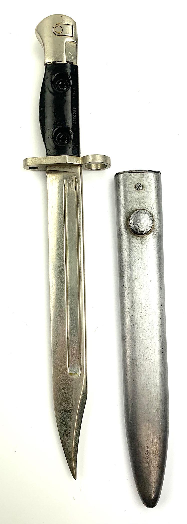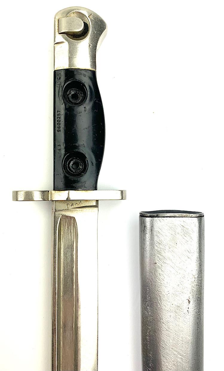 British L1 A3 Parade FAL Bajonet Nice parade bajonet for the British “FAL” rifle Model L1 A3 with its original metal scabbard In used but very good condition.