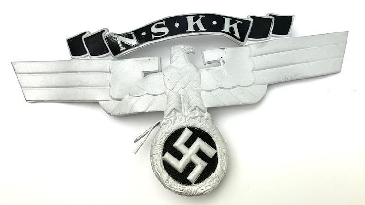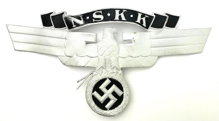 Fantastic and rare to find aluminum NSKK helmet eagle. Great for display or to complete a leather “NSKK Motorsturm” helmet! “RZM M1/8” marked, which is “Ferdinand Wagner, Pforzheim” rare to find!!
