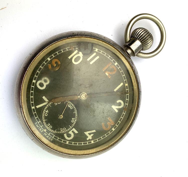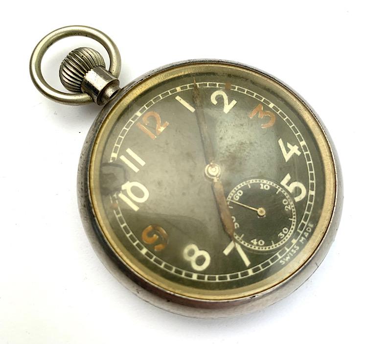 British WW2 Pocket Watch Nice used British WW2 pocket watch with nice “Broad Arrow” marking on its back side! In used but good working condition.