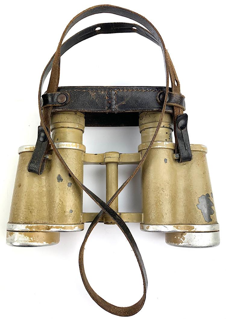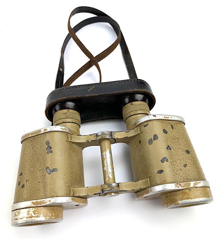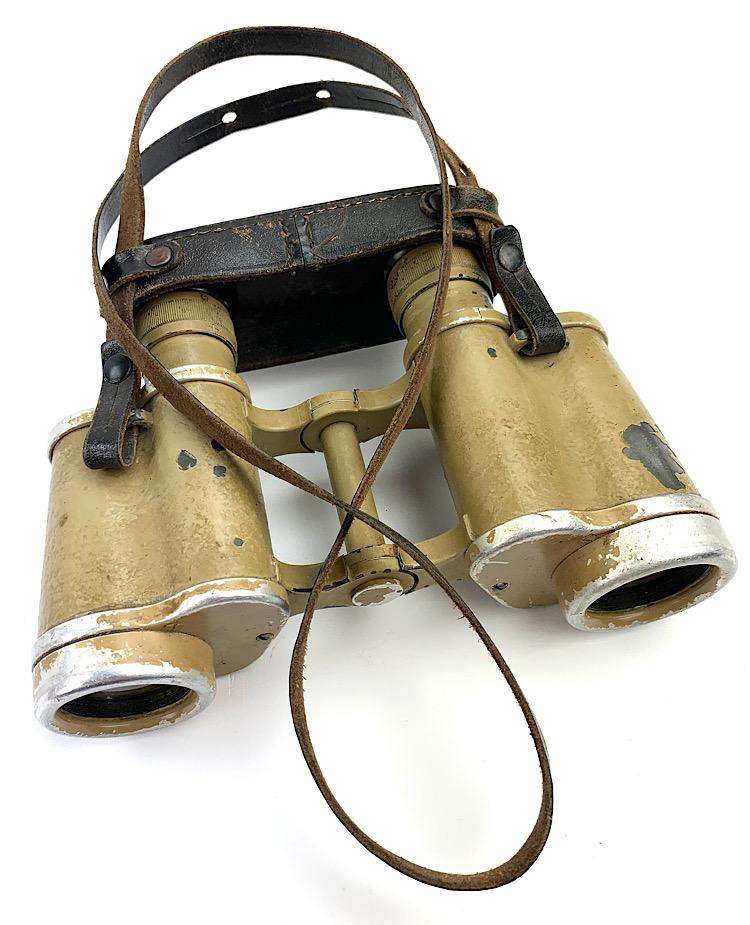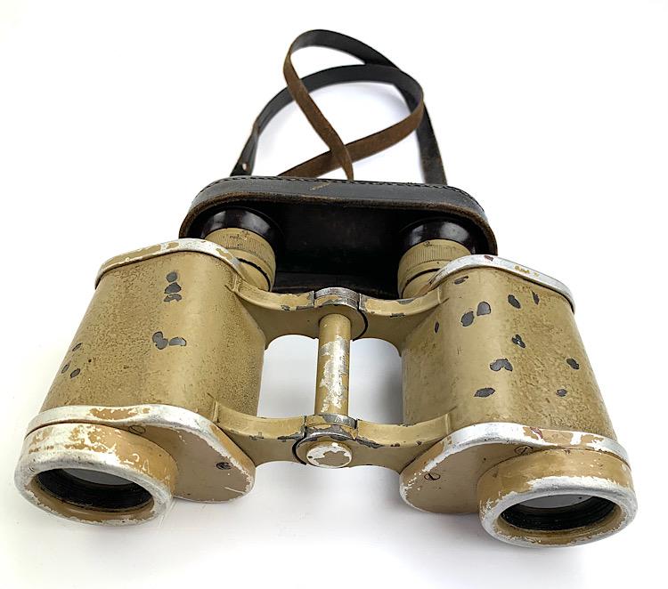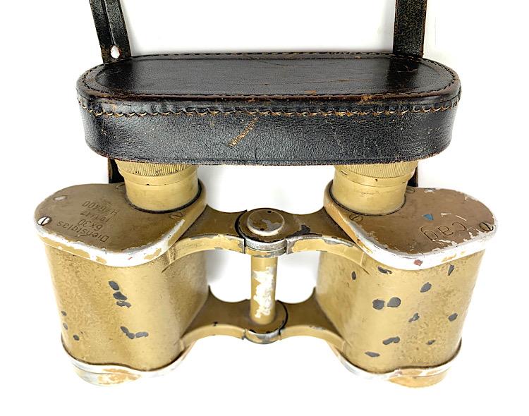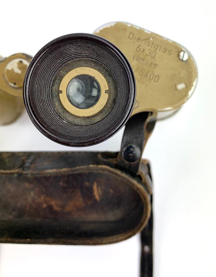 Very nice used Wehrmacht 6x30 binoculars with original leather strap and leather lens cover.