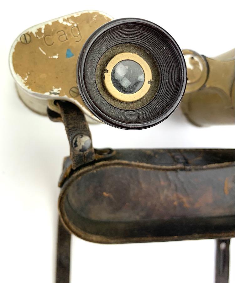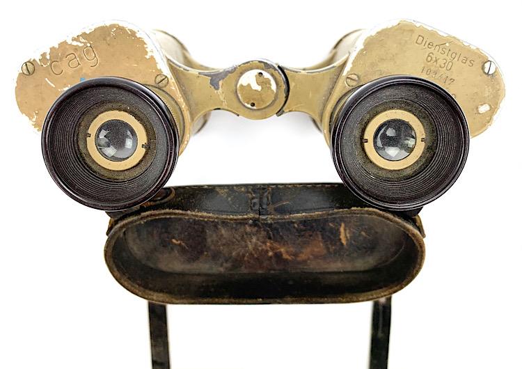 and marked “Diensglas, 6x30”. The binoculars are marked with a bleu triangle, which means they could be used in cold weather. Overal in used but good condition. Great decorative item!