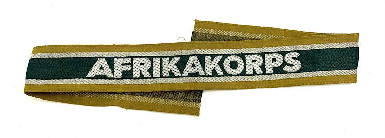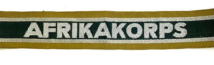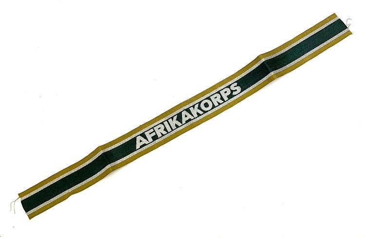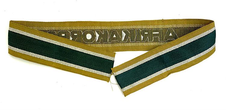 Afrika Korps Cuff Title Mint un-isseud “Afrika Korps” Worn on the tunic by soldiers of the famous “Afrika Korps” Fantastic for a cufftitle collection of on a tropical “Afrika Korps” tunic. Impossible to upgrade!