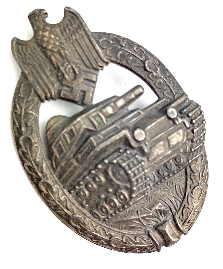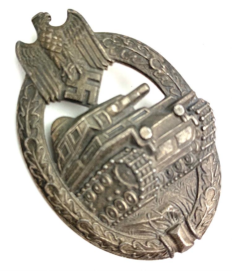 Very nice maker marked Panzer Assault Badge “Panzerkampf Abzeichen” in silver.
