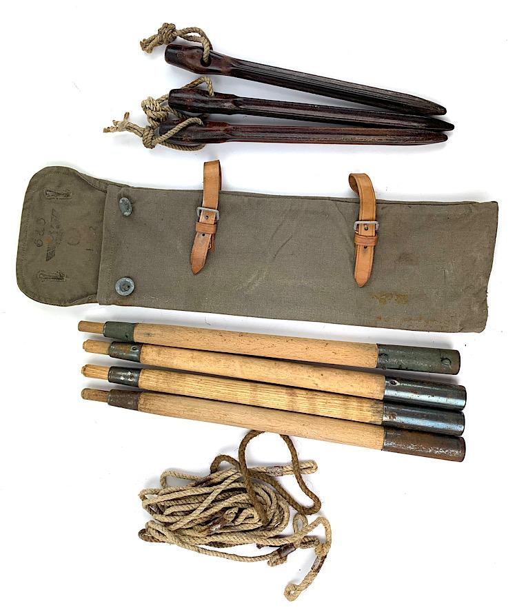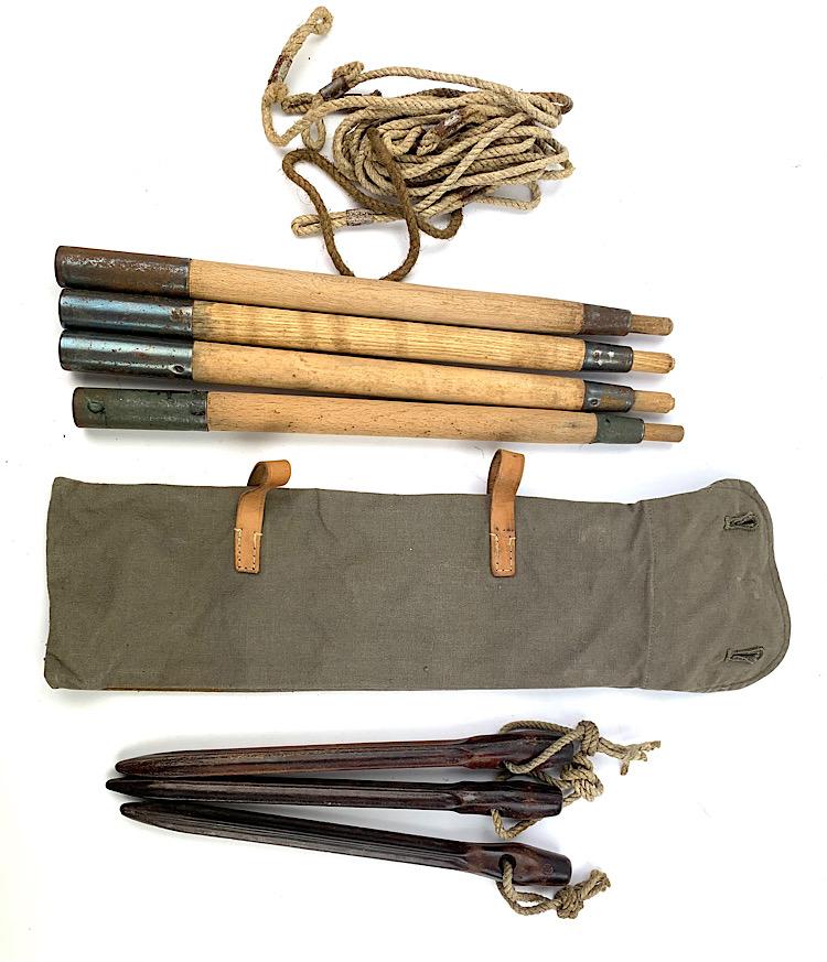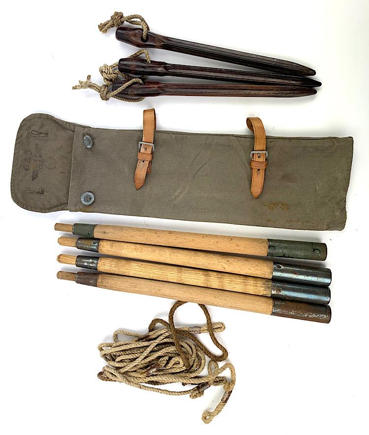 tentpoles/peg pouch. With bakelite peg’s and original rope/strings In very good condition.