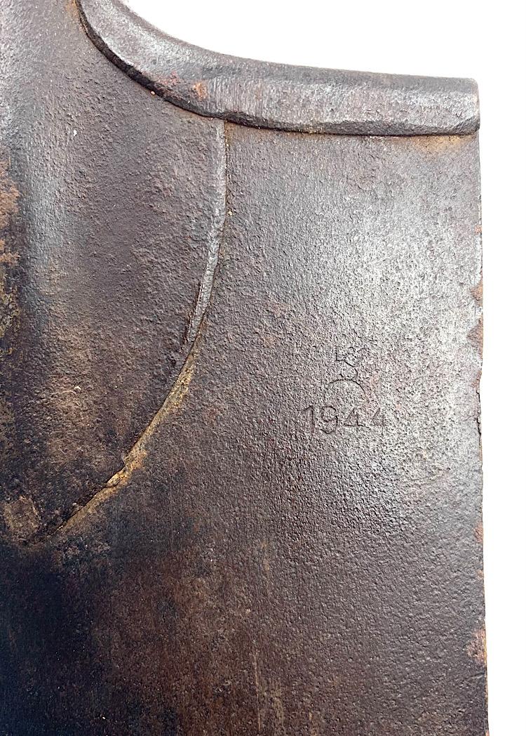 Very nice Wehrmacht entrenching tool with ersatz leder made cover. Nicely maker code marked “EUE” and “Waffen Ambt. Dated “1942”, the Entrenching tool with factory sign marked and dated “1944”