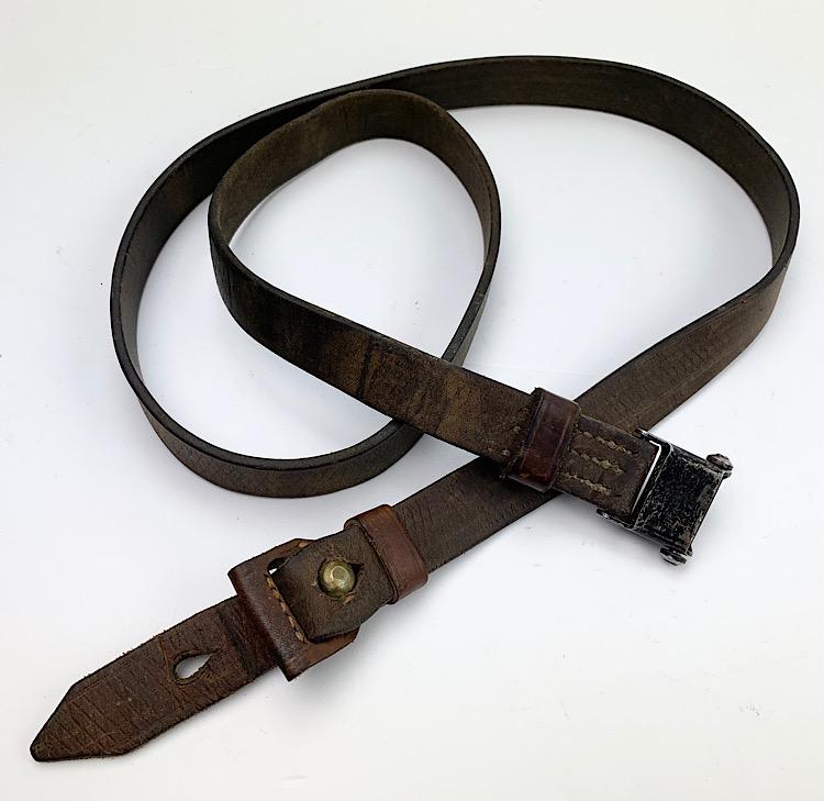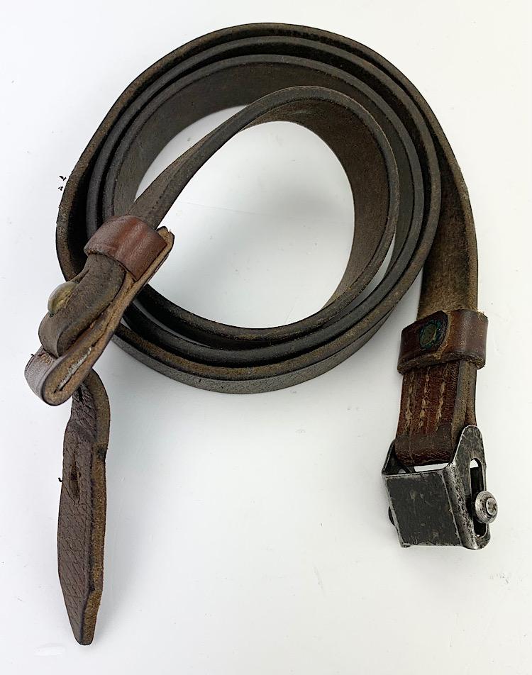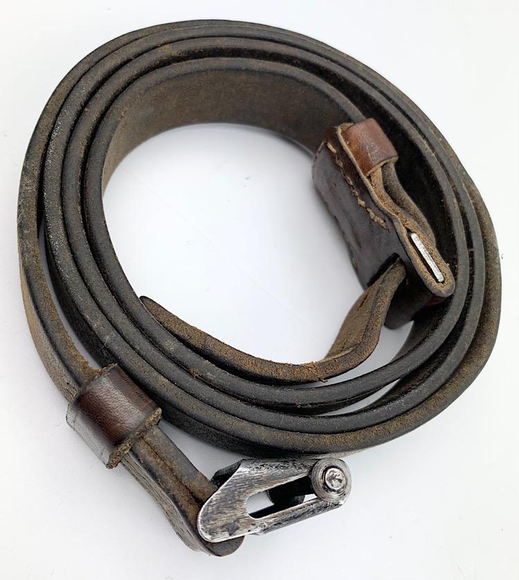 K98 Rifle Sling Very nice used early (brass button) K98 Rifle Sling Leather in good and smooth condition. Perfect to complete a very nice K98. G43 or Sturmgewehr (MP43/44) overal in used but very good condition.