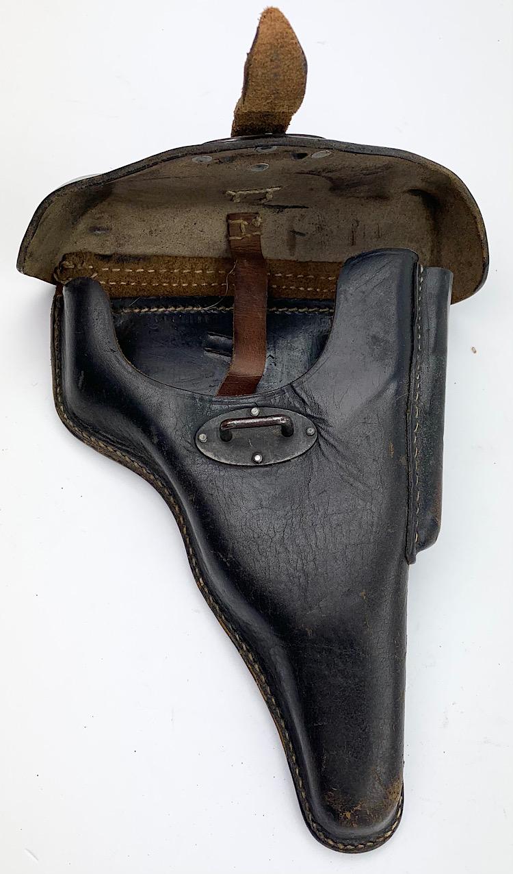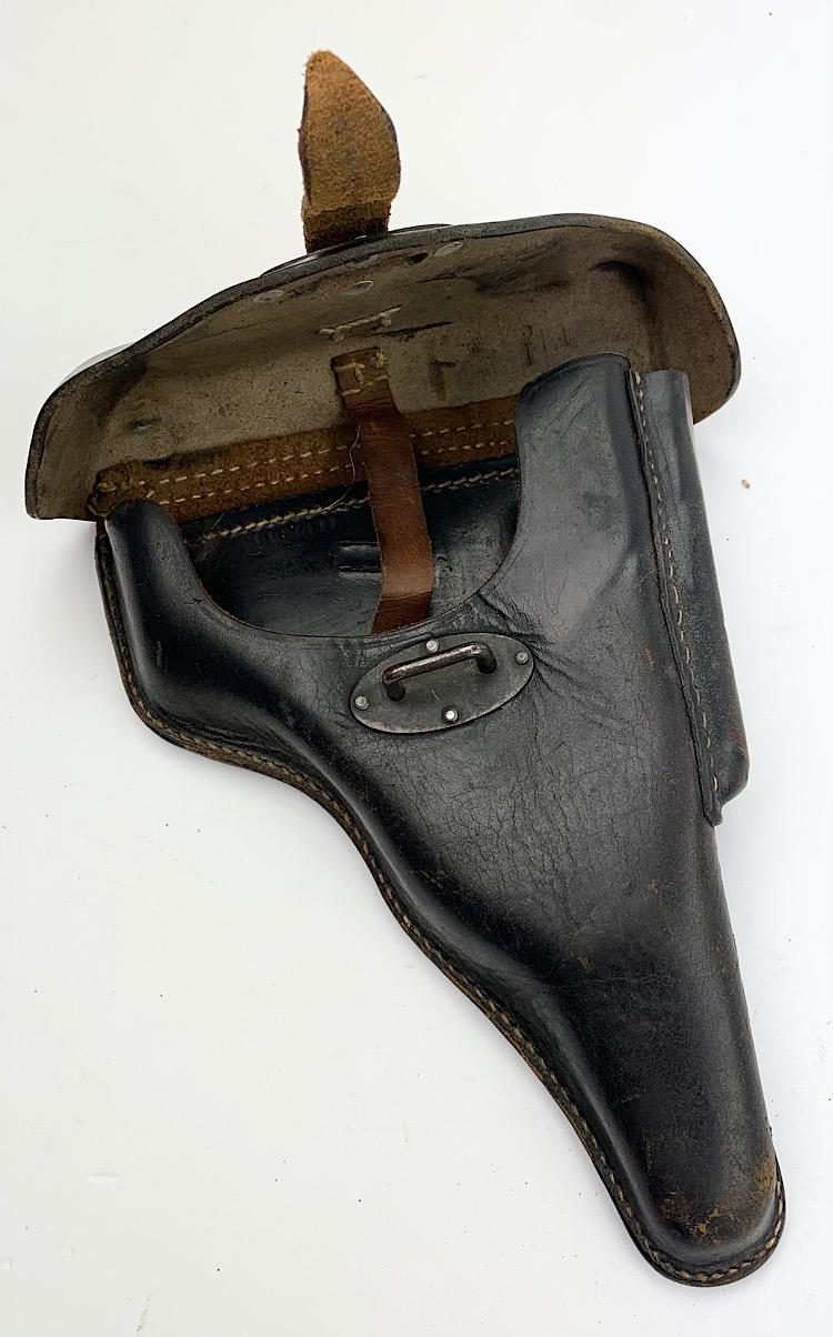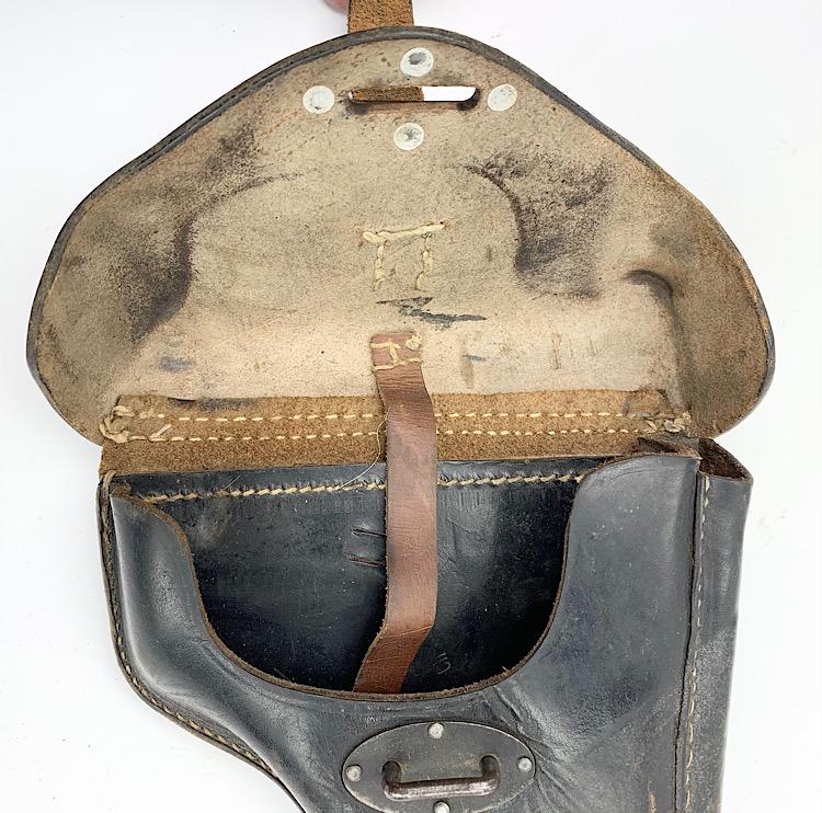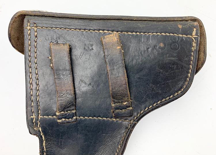 The holster is very nice maker code marked “DKK” and dated “1943” nicely “Waffen Ambt.” Marked and marked “P38” (Pistole 38) Overal a nice P38 pistol holster in used but very good condition.