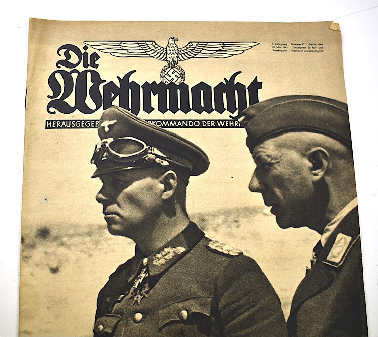 Die Wehrmacht magazine Dated “May 21. 1941” printed in order of the “Oberkommando der Deutsche Wehrmacht” With on the cover a “General Leutnant Erwin Rommel” in Tobruk Nice magazine in good condition.