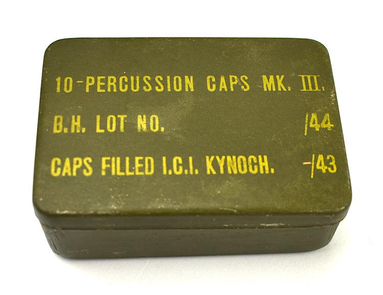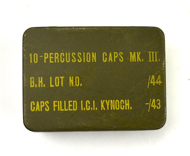 British WW2 metal Percussion Caps Can Nice empty metal can for percussion caps. These caps where used for detonation of explosives by combat engineers. In very good condition.
