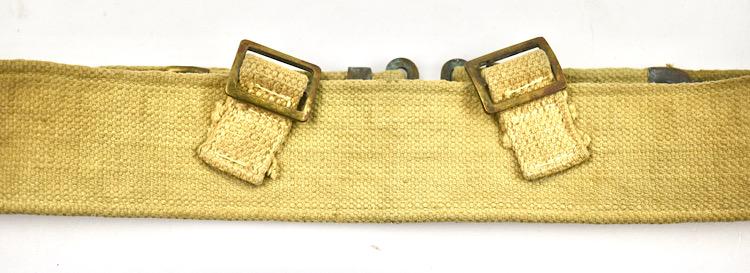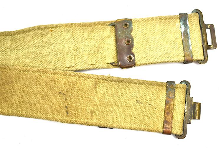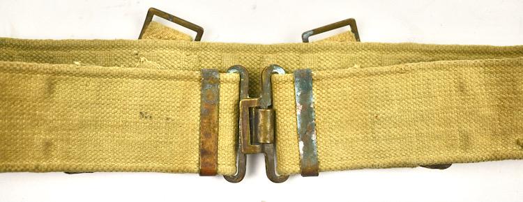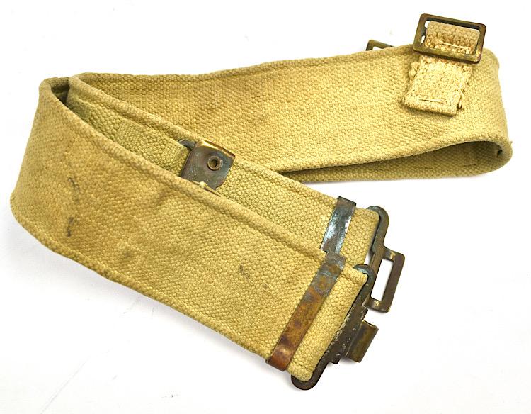 British WW2 Webbing combat Belt Nice used British WW2 webbing combat belt Maker marked and dated, but very hard to read Overal a nice used British WW2 combat belt in very good condition.
