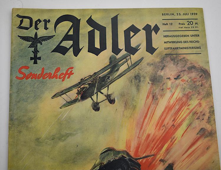 Der Adler Luftwaffe Magazine Special Edition On the cover “Die Deutsche Flieger im Welt Krieg” Dated “July 25, 1939” (Sonderheft) With lots a nice photographs inside. In very good condition.