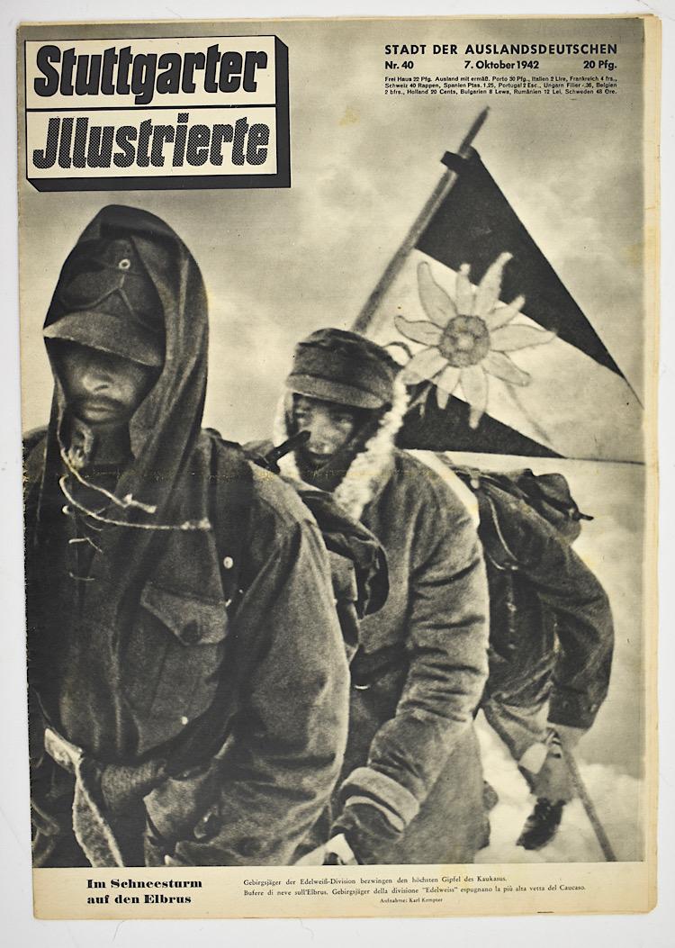 Stuttgarter Illustrierte magazine Very nice decorative magazine with Gebirgsjägers in cold weather and snow, with Regiments flag. Dated “Oktober 7, 1942” In very good condition.