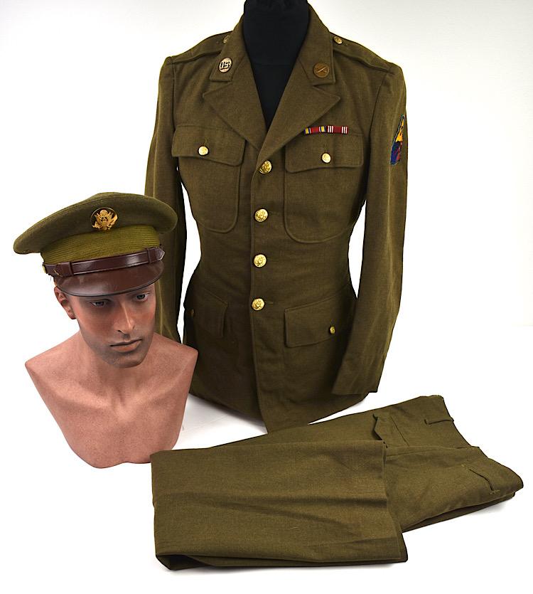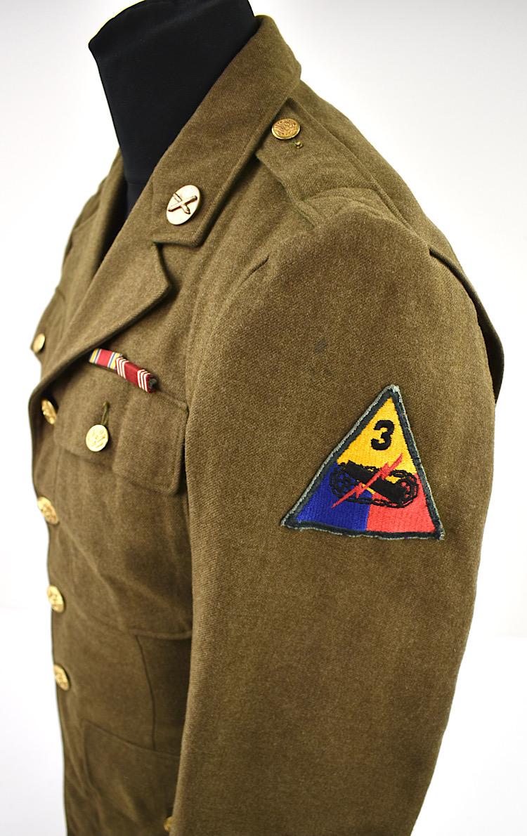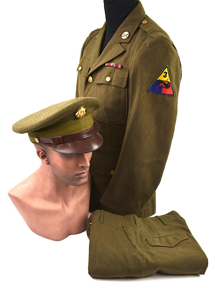 Nice used US WW2 class A tunic 3th Armored Division for enlisted man, with enlisted visor cap.
