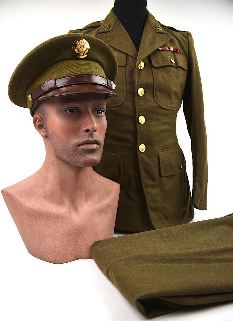 The tunic is marked inside with the personal loundry number. Overal a nice US WW2 class A tunic and visor cap in used but good condition.