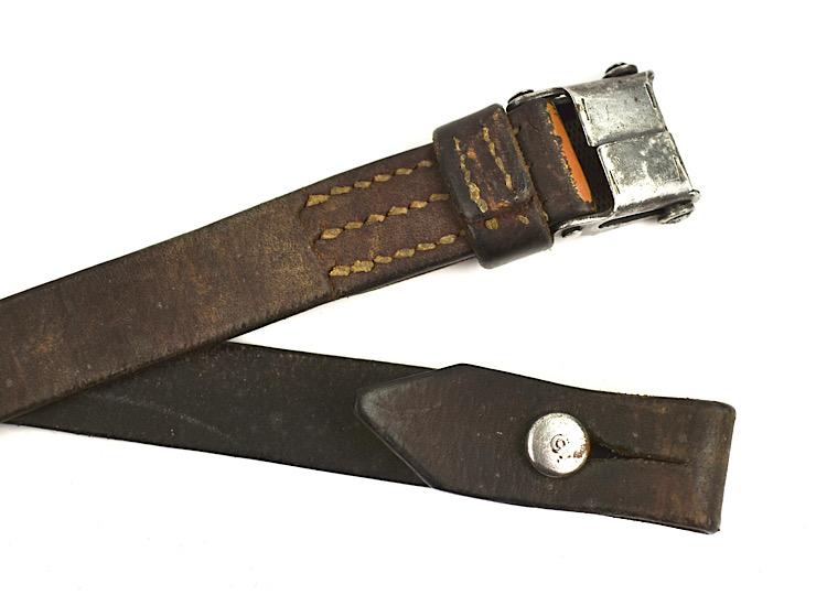 MP38/40 Sling Nice used but smooth leather MP38/40 machine pistol sling, with its original steel button. Fantastic to complete a EU Deko MP38 or MP40 In used but good condition.