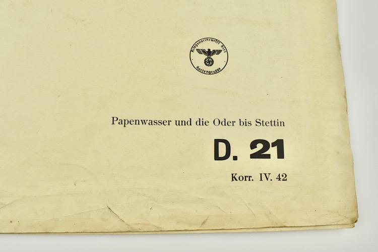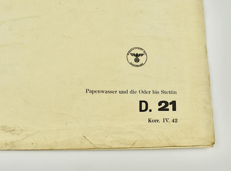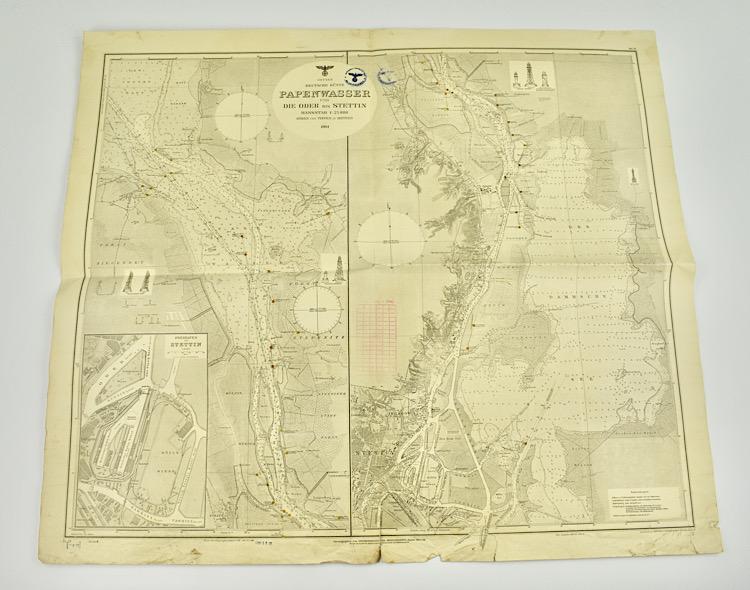 Nice early Kriegsmarine map of Papenwasser und die Oder bis Stettin Dated “1942”
