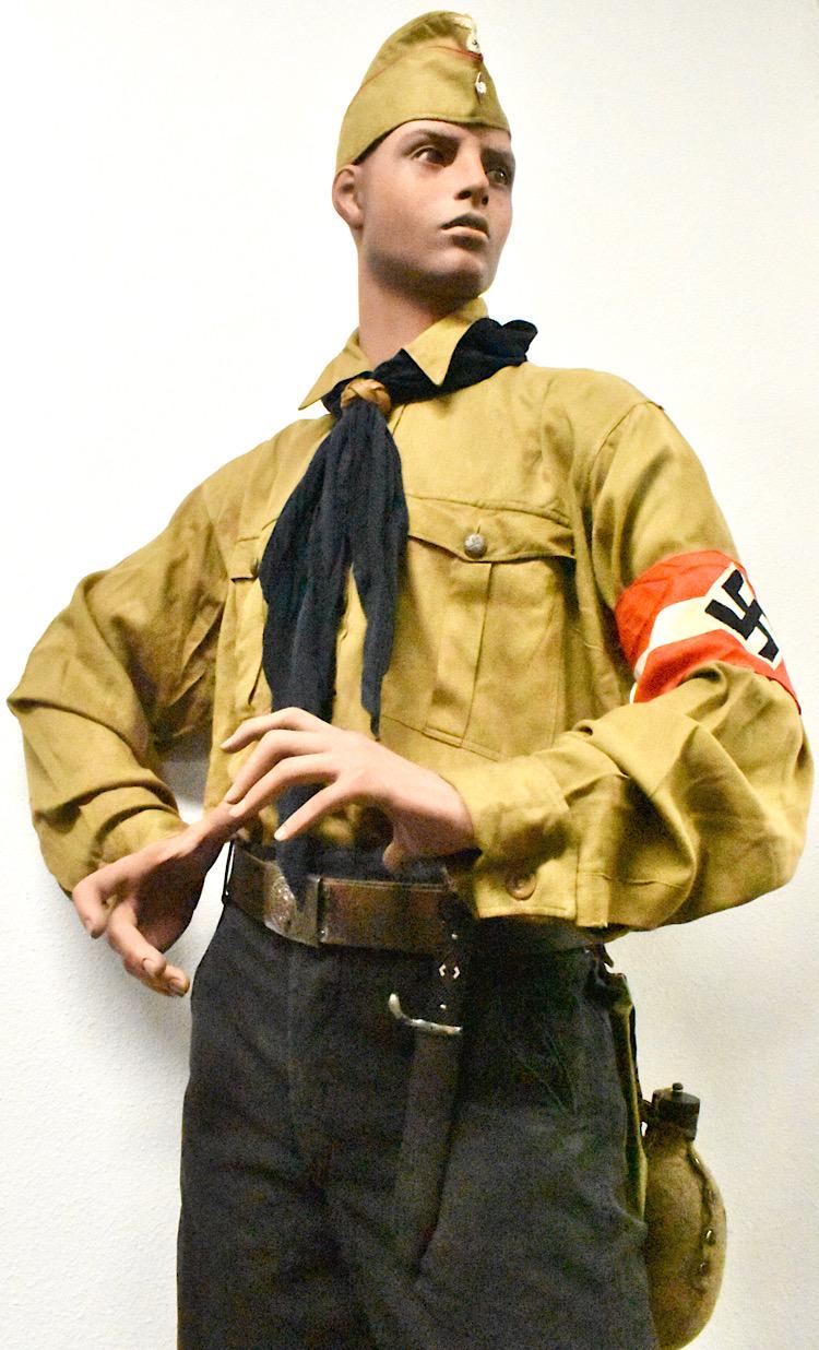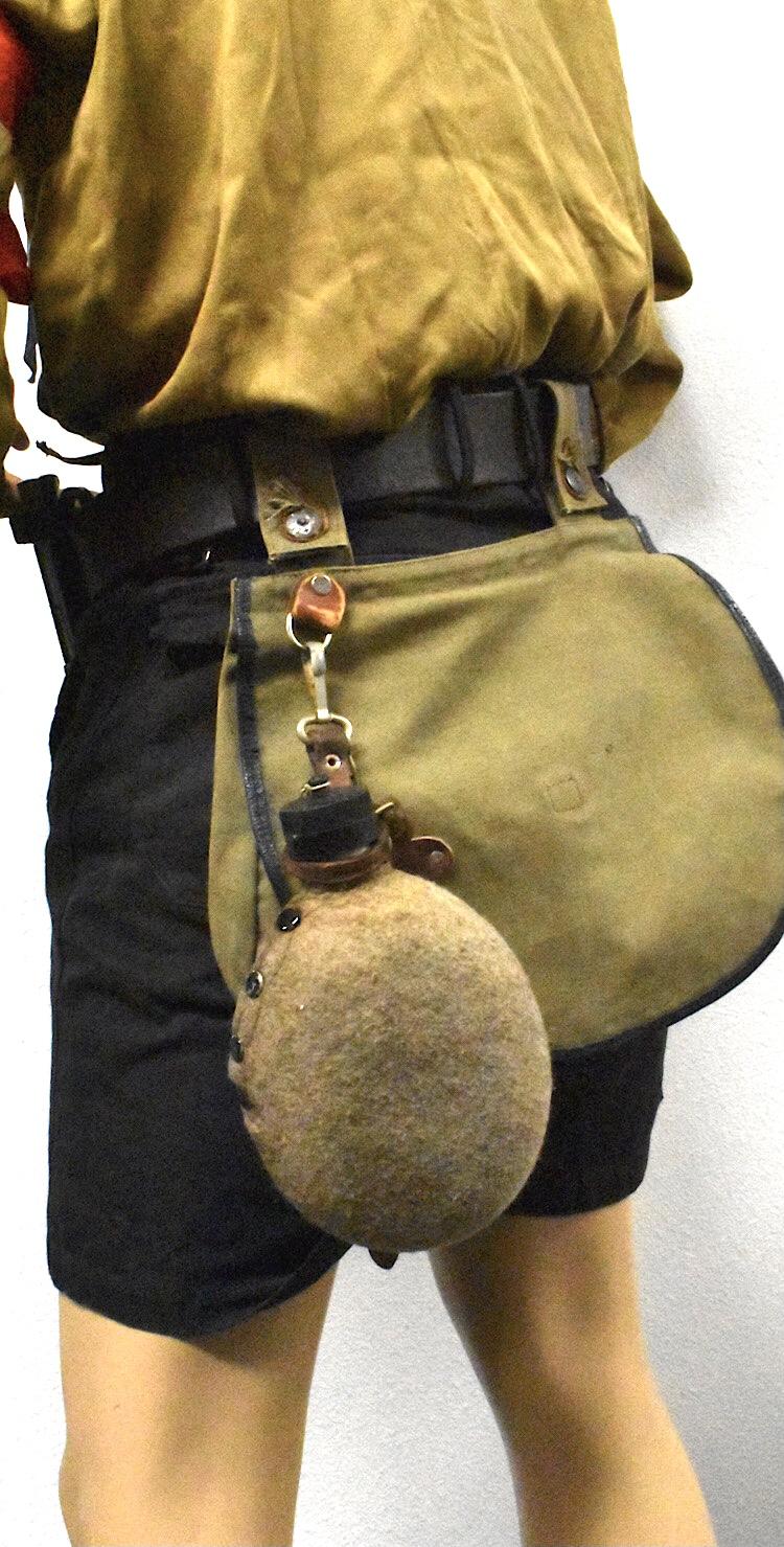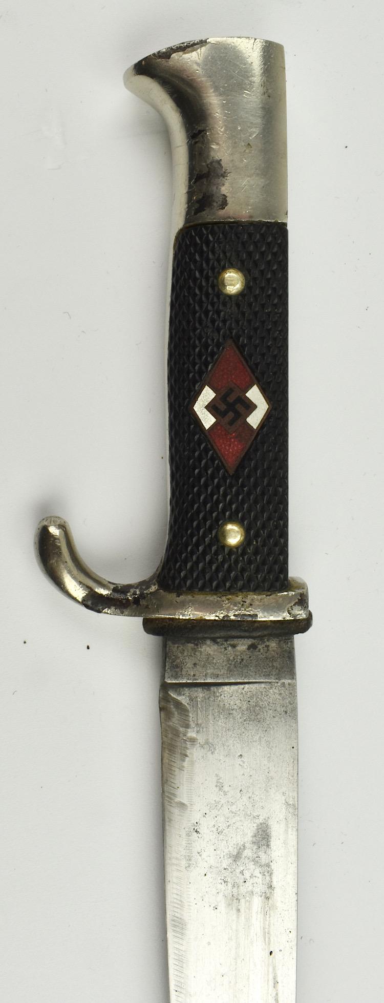 With Hitler-Jugend Shirt, armband, Shorts, Scarve and knot, Side Cap, Socks, HJ, belt and buckle, breadbag, canteen and a nice Hitler-Jugend knife marked “RZM M7/25” which is a rare maker “Wilhelm Wagner, Solungen-Merscheid” shoes not included. overall a very nice complete mannequin with an almost complete and original Hitler-Jugend tunic and equipment. Notice! Shipping Possible, € 50,- extra shipping cost because of weight and volume!