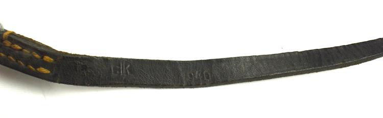 Near mint rare leatger Wehrmacht marching compass strap. Maker code marked “CLK” and dated “1940”