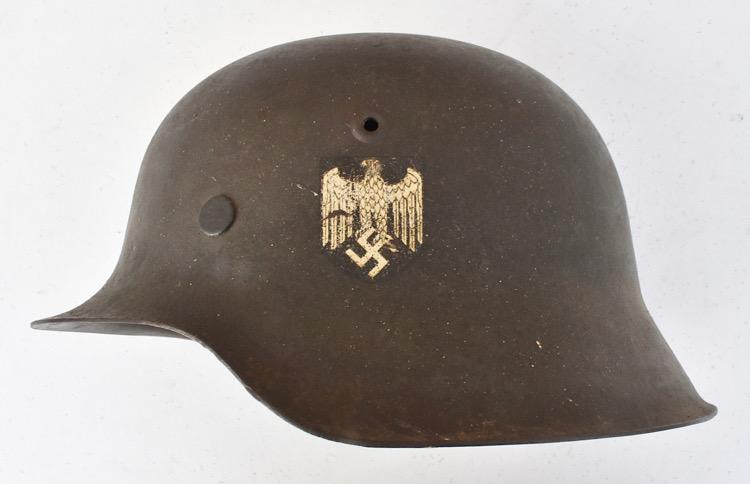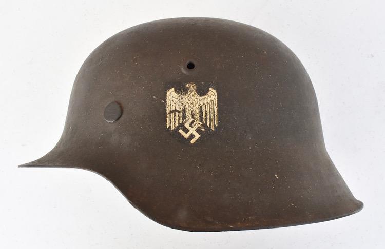 Very nice used Wehrmacht M42 model SD combat helmet. Maker code marked “CKL” which is “Eisenhuttenwerk AG, Thale Harz” in size “62”