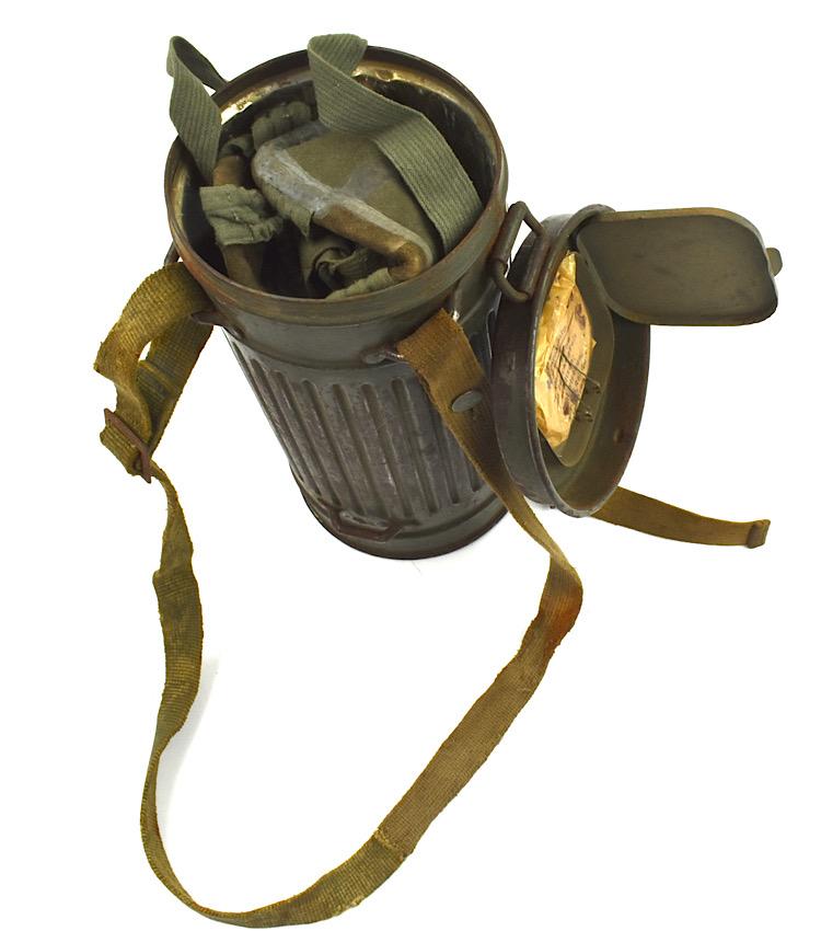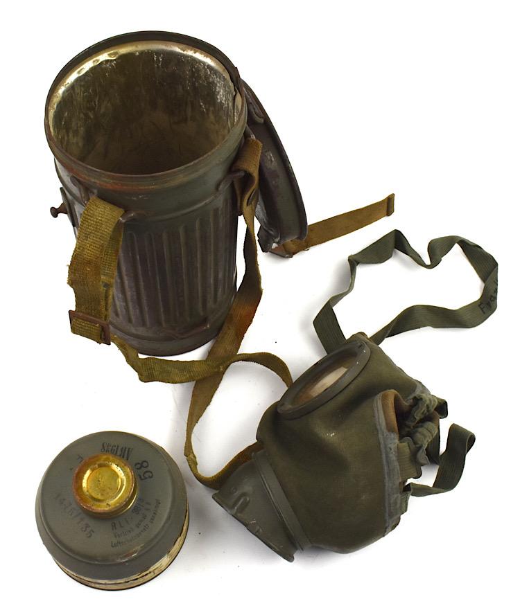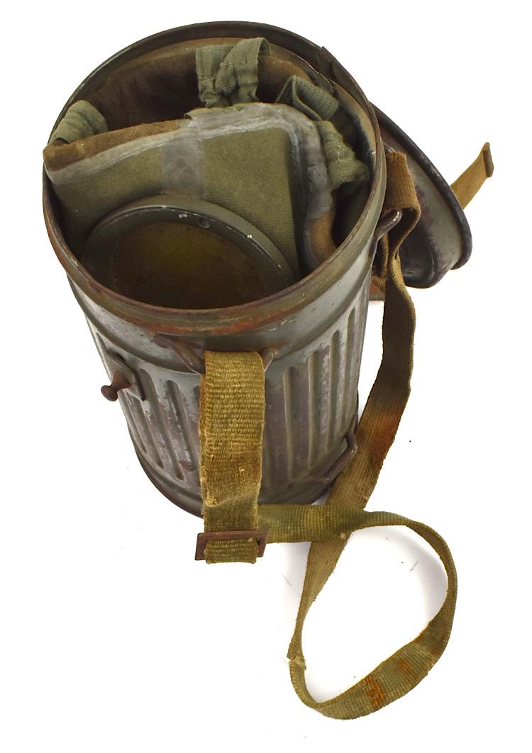 Missing the short lowerstrap. Filter Luftschutz marked, but mask and cannister are Wehrmacht issue. In used but good condition.